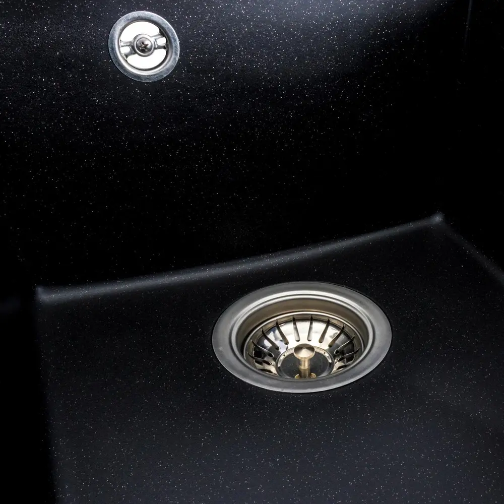 Мойка VALESO изготовлена из высококачественного кварца (80%) и твердой акриловой смолы (20%). Это сочетание делает ее не только неприхотливой в уходе, но и придает запас прочности. Благодаря матовой фактуре и приятному глазу черному цвету, мойка легко вписывается в любой интерьер кухни, придавая ему современный и стильный вид.