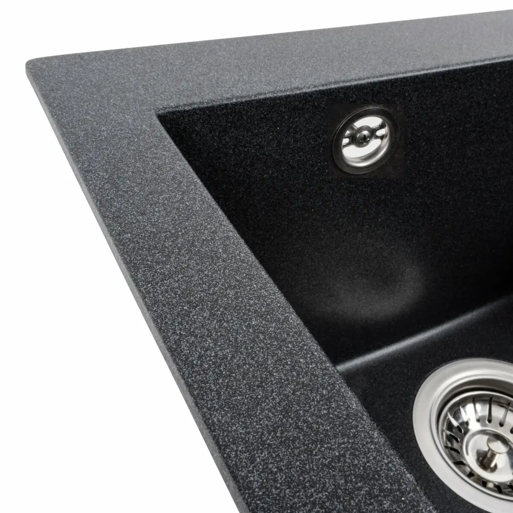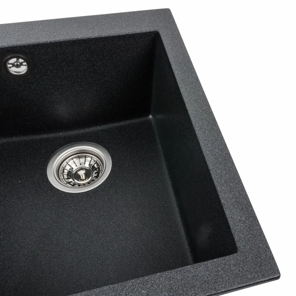 Гранитная мойка для кухни 4150 SOKIL украинского бренда VALESO – это стильная, врезная, прямоугольная мойка, которая своим видом прекрасно дополнит дизайн вашей кухни. Мойка на 80% состоит из кварца и на 20% из очень жесткой акриловой смолы, благодаря чему неприхотлива в уходе, а также имеет большой запас прочности.