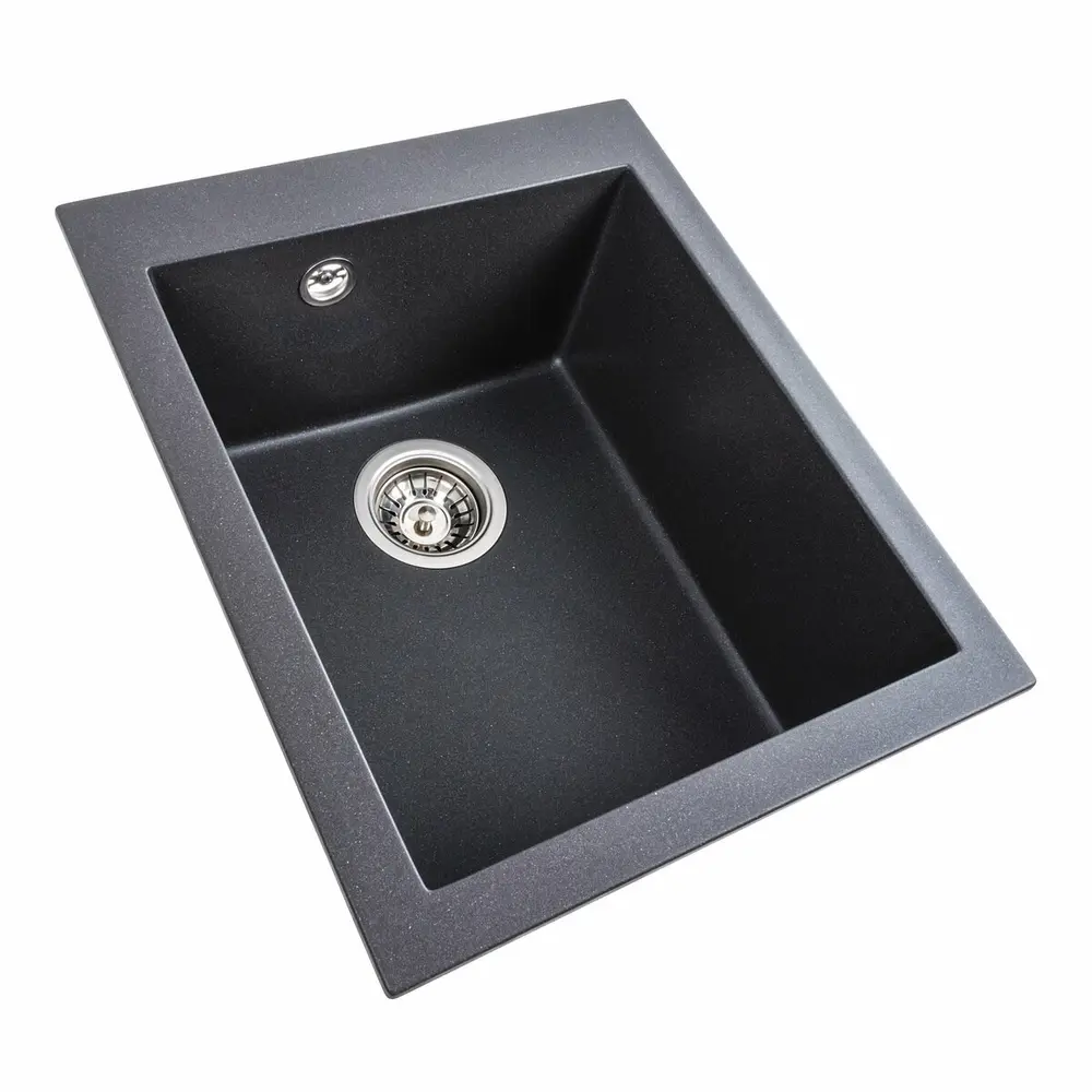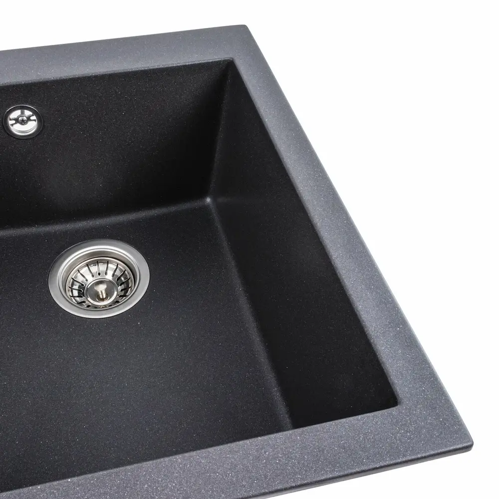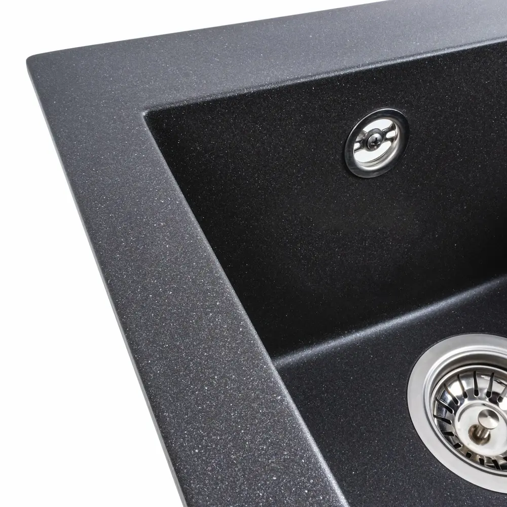 Гранитная мойка для кухни 4150 SOKIL украинского бренда VALESO – это стильная, врезная, прямоугольная мойка, которая своим видом прекрасно дополнит дизайн вашей кухни. Мойка на 80% состоит из кварца и на 20% из очень жесткой акриловой смолы, благодаря чему неприхотлива в уходе, а также имеет большой запас прочности.