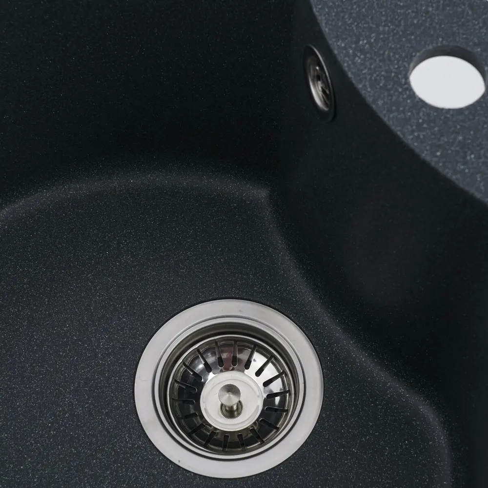 Мойка имеет матовую фактуру и приятный для глаза цвет - антрацит, что позволяет ей легко вписаться в интерьер кухни.