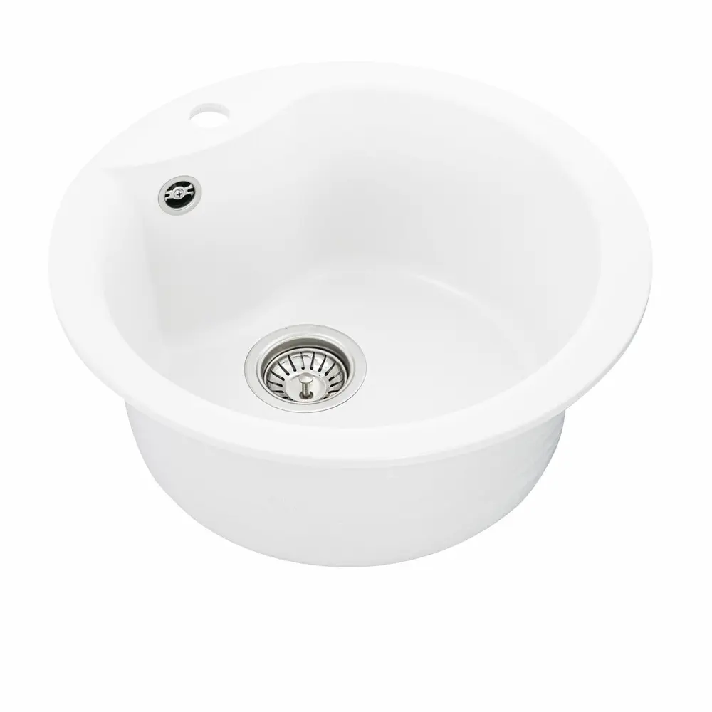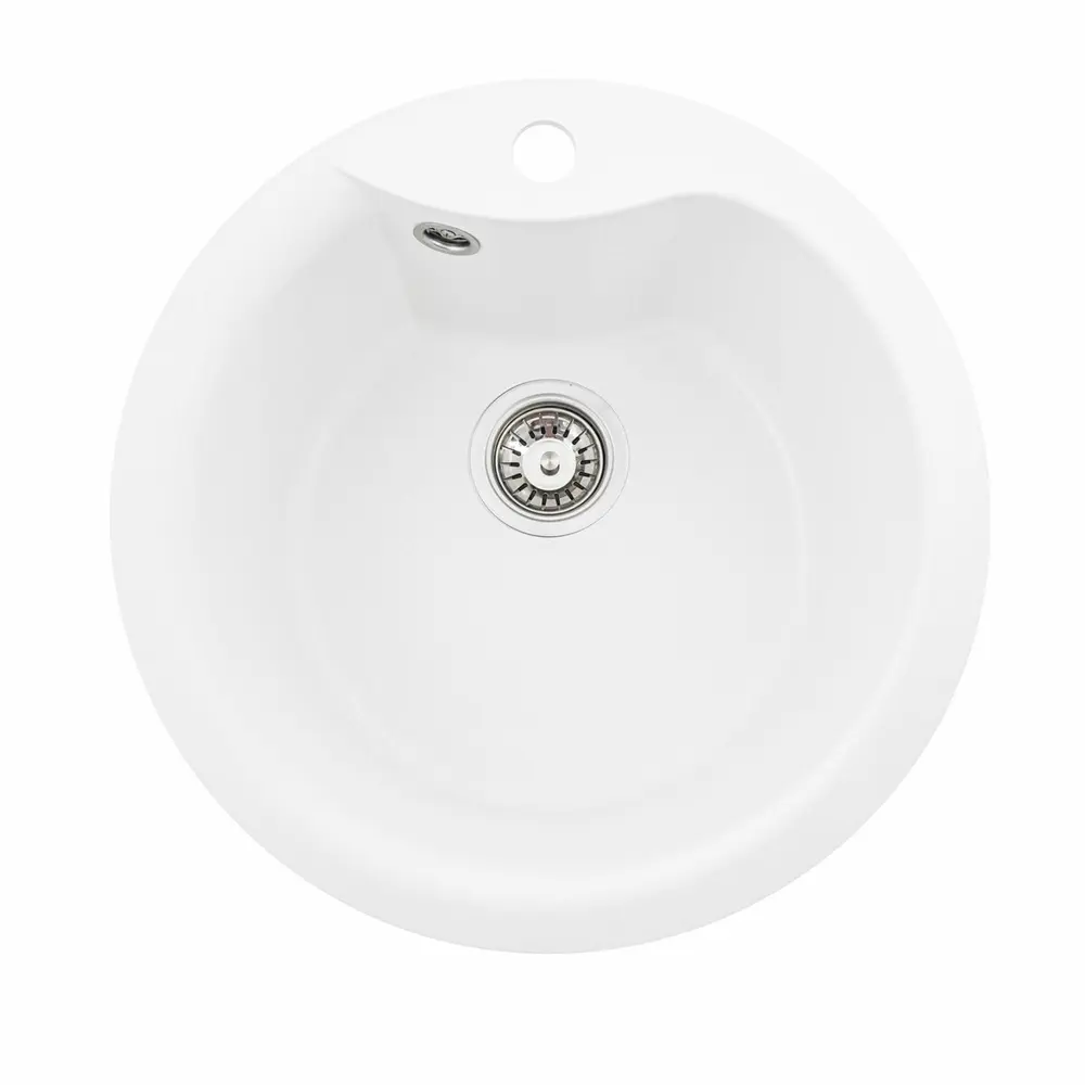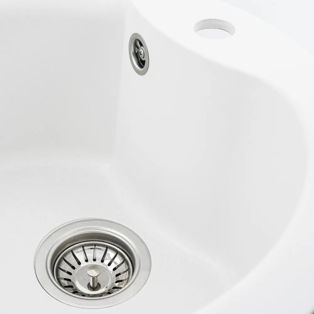 Мойка имеет матовую фактуру и приятный для глаза цвет - белоснежный, что позволяет ей легко вписаться в интерьер кухни.