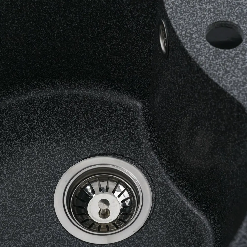 Мойка имеет матовую фактуру и приятный для глаза цвет - графит, что позволяет ей легко вписаться в интерьер кухни.