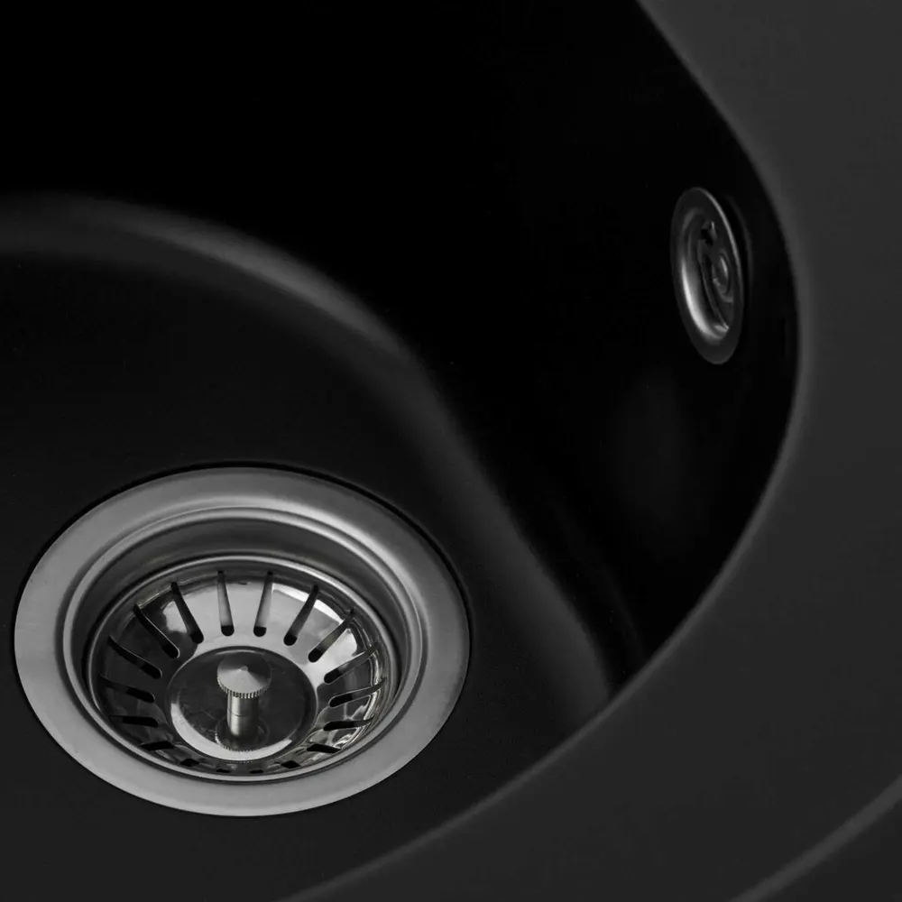 Мойка имеет матовую фактуру и приятный для глаза цвет - черный, что позволяет ей легко вписаться в интерьер кухни.