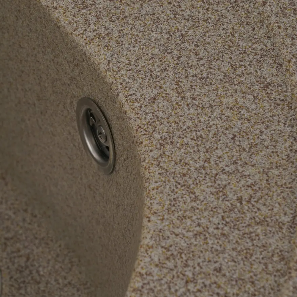 Мойка имеет матовую фактуру и приятный для глаза цвет - карамель, что позволяет ей легко вписаться в интерьер кухни.