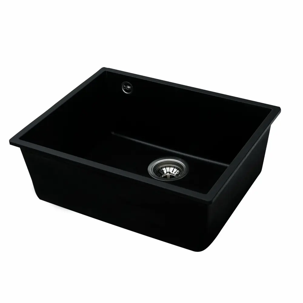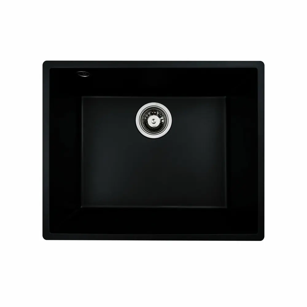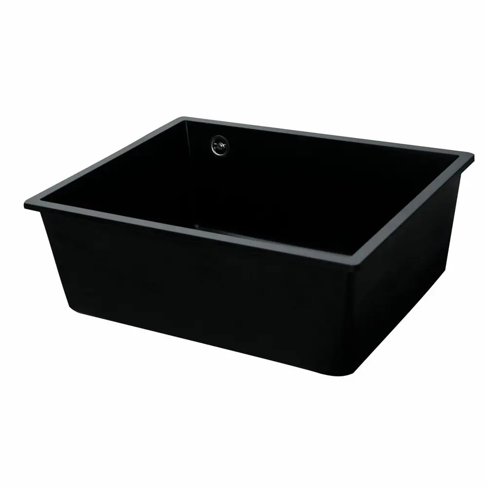 Мойка имеет матовую фактуру и приятный для глаза цвет - черный, что позволяет ей легко вписаться в интерьер кухни.