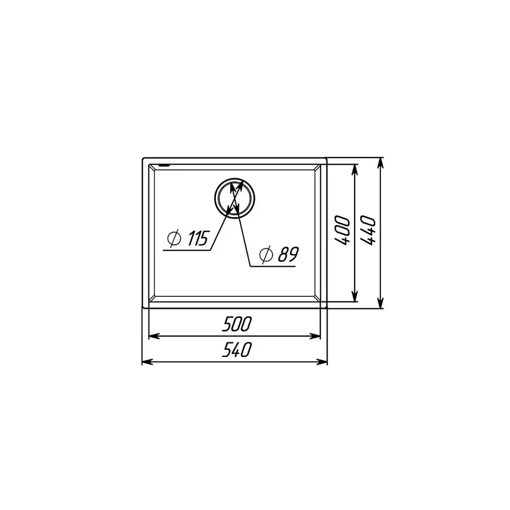 Размеры мойки – 540х440х200 мм, вес – 9,2 кг, сифон - евросифон с широкой горловиной, 110 мм.