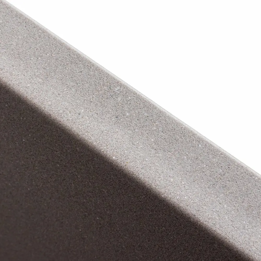 Мойка на 80% состоит из кварца и на 20% из очень жесткой акриловой смолы, благодаря чему неприхотлива в уходе, а также имеет большой запас прочности.