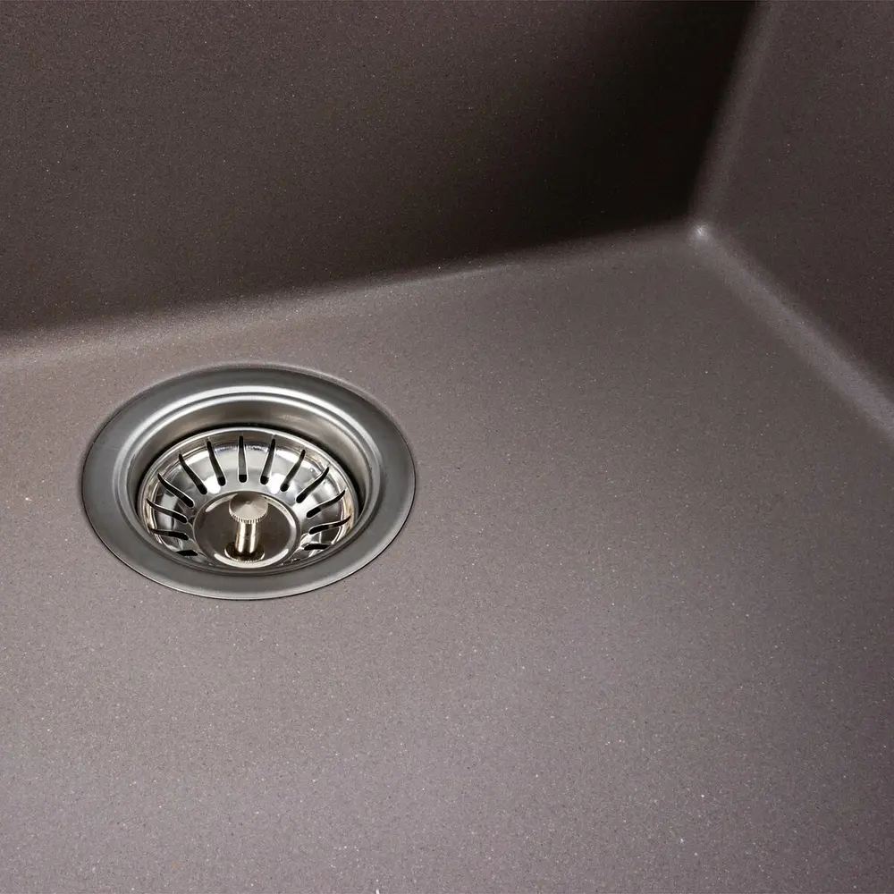 Мойка имеет матовую фактуру и приятный для глаза цвет – дюна, что позволяет ей легко вписаться в интерьер кухни.
