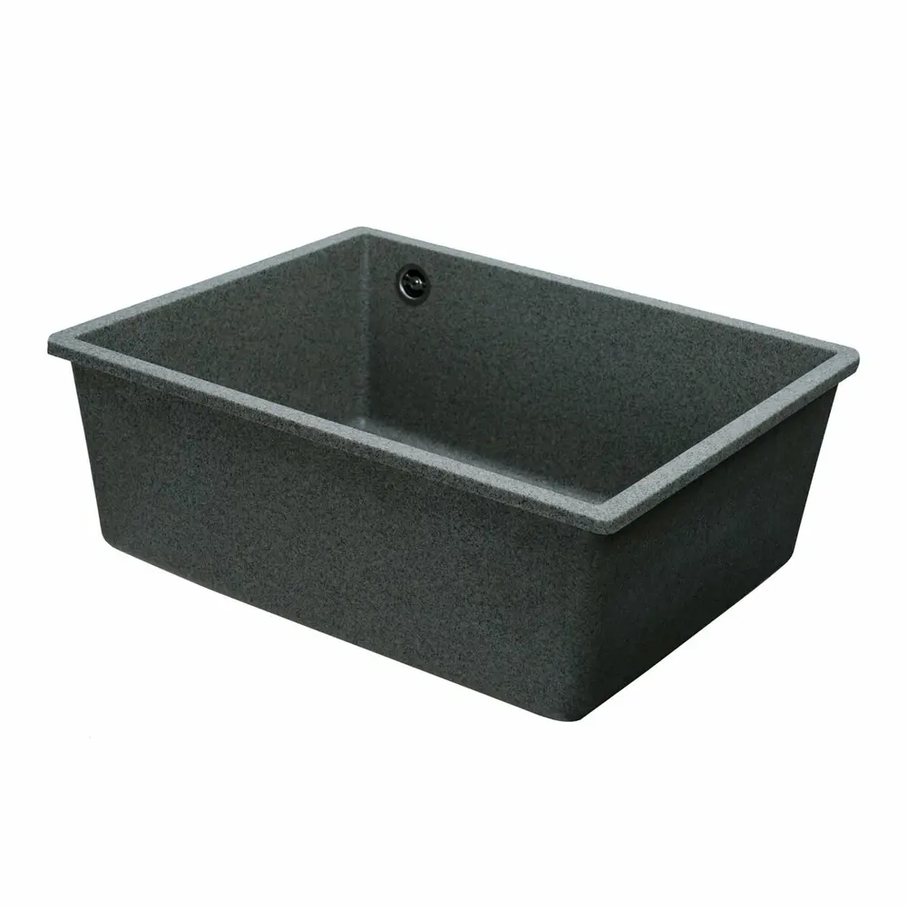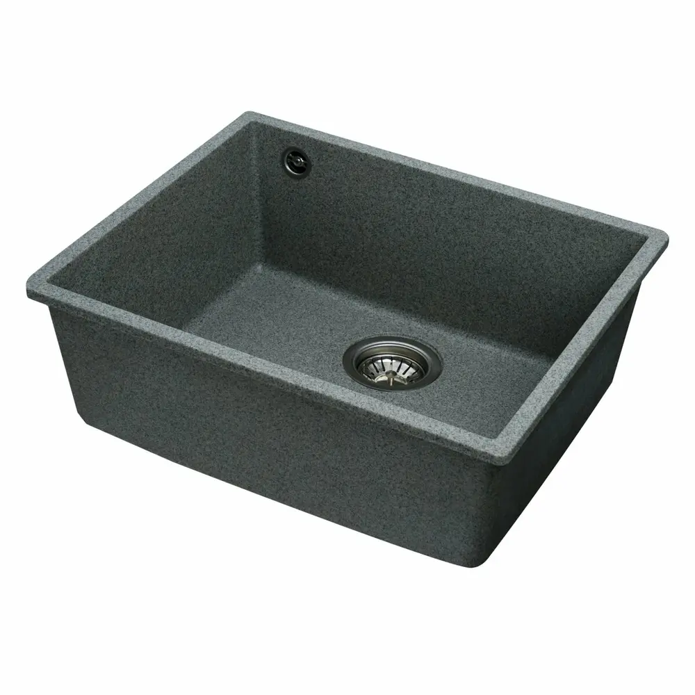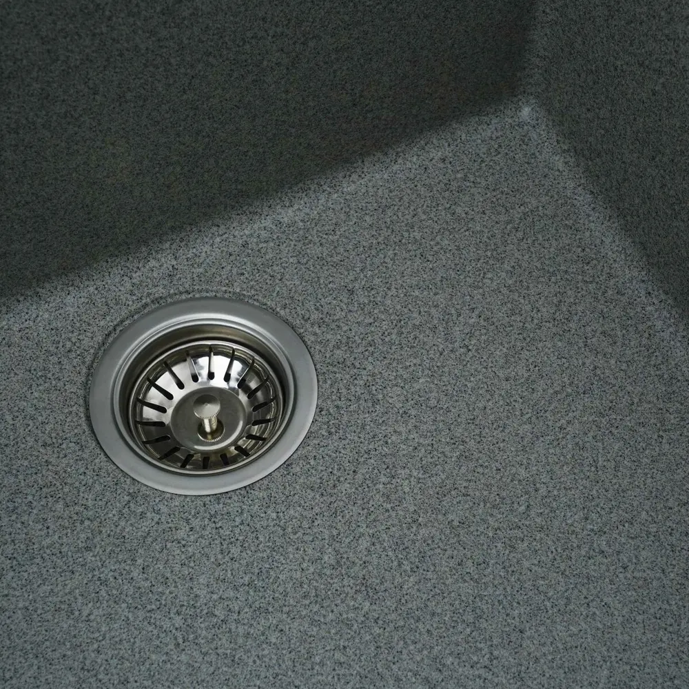 Мойка имеет матовую фактуру и приятный для глаза цвет - серый, что позволяет ей легко вписаться в интерьер кухни.