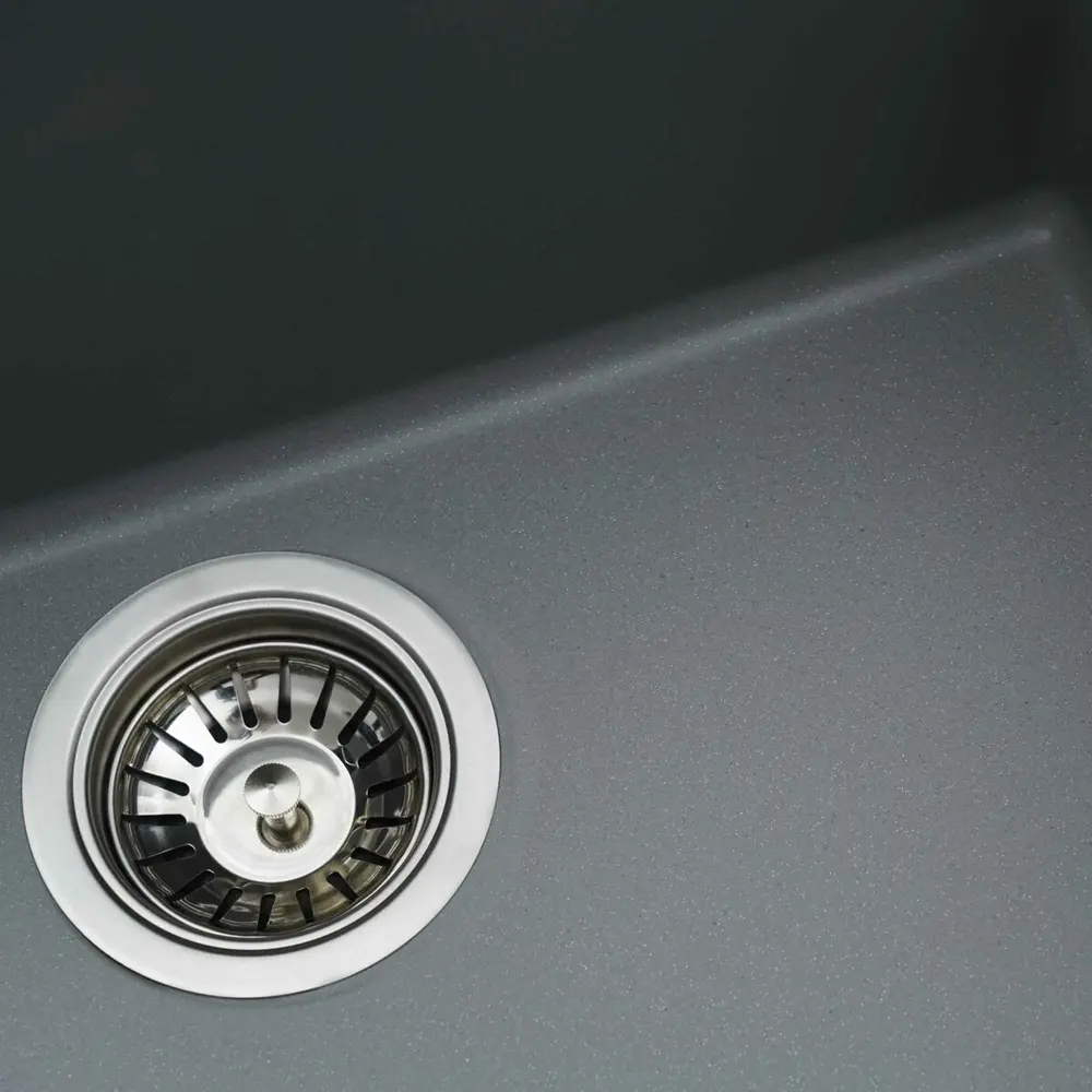 Мойка имеет матовую фактуру и приятный для глаза цвет - серый металлик, что позволяет ей легко вписаться в интерьер кухни.