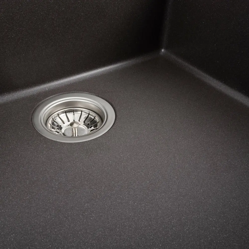 Мойка на 80% состоит из кварца и на 20% из чрезвычайно твердой акриловой смолы, благодаря чему неприхотлива в уходе, а также имеет большой запас прочности.