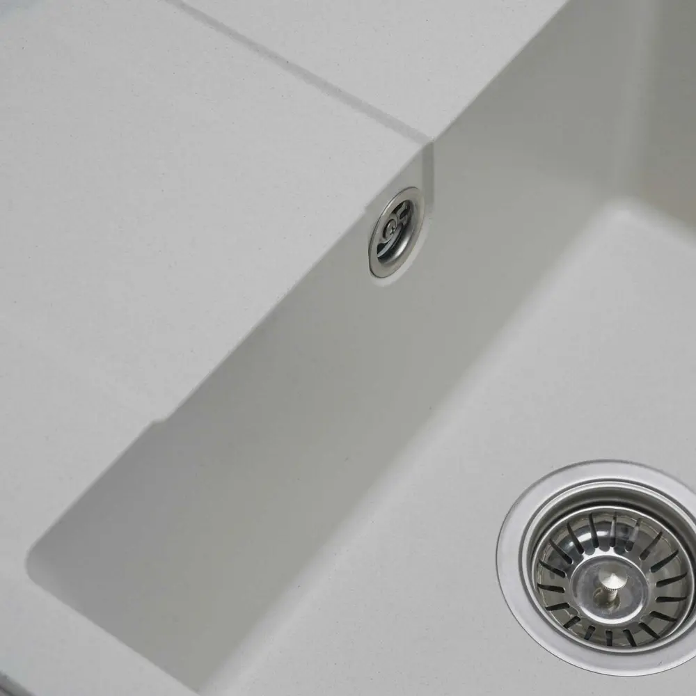 Мойка на 80% состоит из кварца и на 20% из чрезвычайно твердой акриловой смолы, благодаря чему неприхотлива в уходе, а также имеет большой запас прочности.
