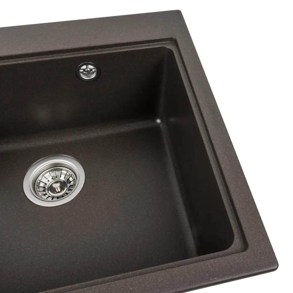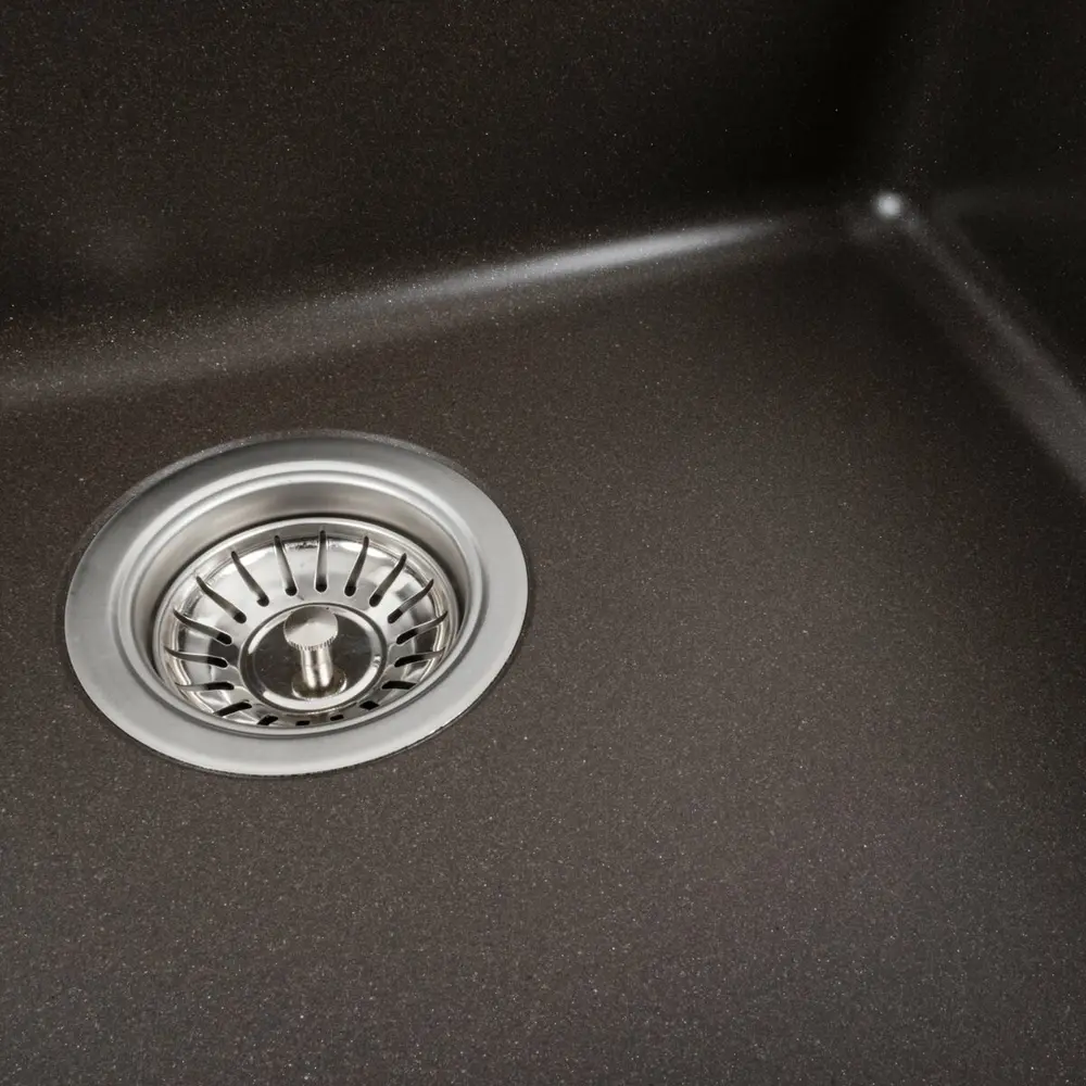 Мойка имеет матовую фактуру и приятный для глаза цвет - темная скала, что позволяет ей легко вписаться в интерьер кухни.