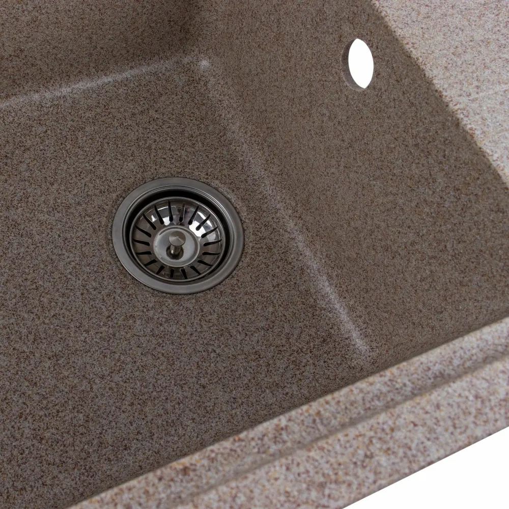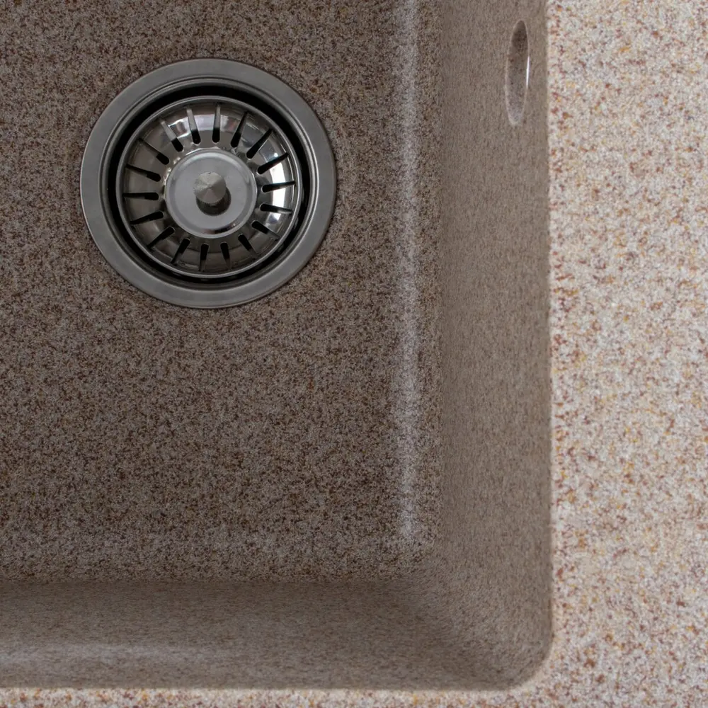 Мойка имеет матовую фактуру и приятный для глаза цвет - карамель, что позволяет ей легко вписаться в интерьер кухни.