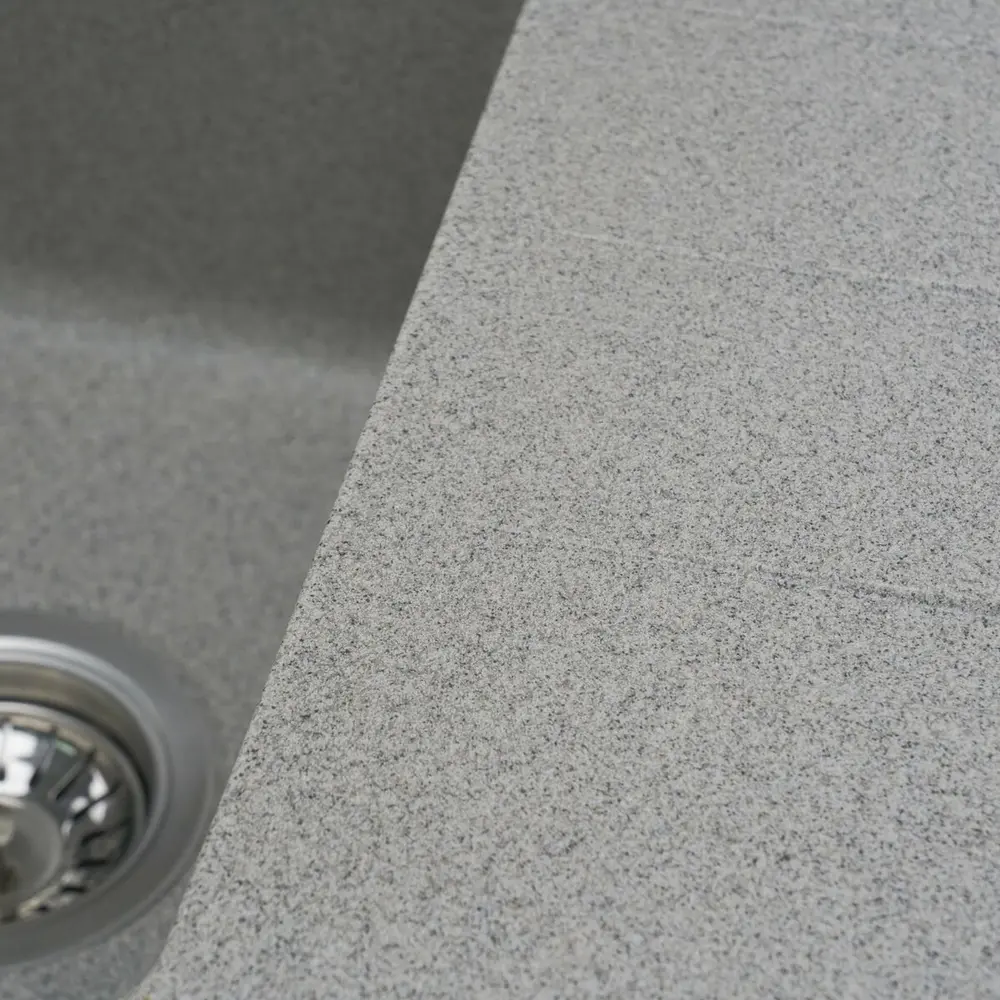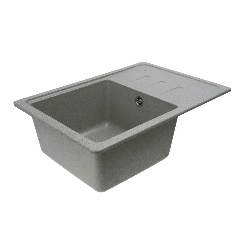 Мойка имеет матовую фактуру и приятный для глаза цвет - серый, что позволяет ей легко вписаться в интерьер кухни.