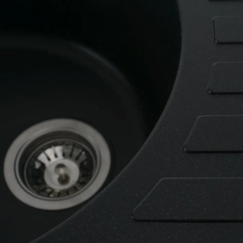 Мойка имеет матовую фактуру и приятный для глаза цвет - черный металлик, что позволяет ей легко вписаться в интерьер кухни.
