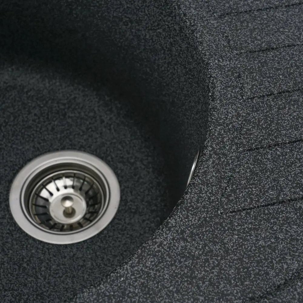 Мойка имеет матовую фактуру и приятный для глаза цвет - графит, что позволяет ей легко вписаться в интерьер кухни.