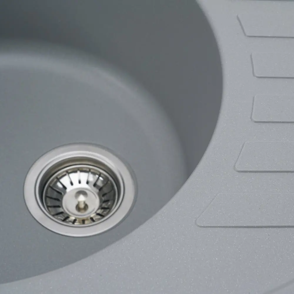 Мойка имеет матовую фактуру и приятный для глаза цвет - серый металлик, что позволяет ей легко вписаться в интерьер кухни.