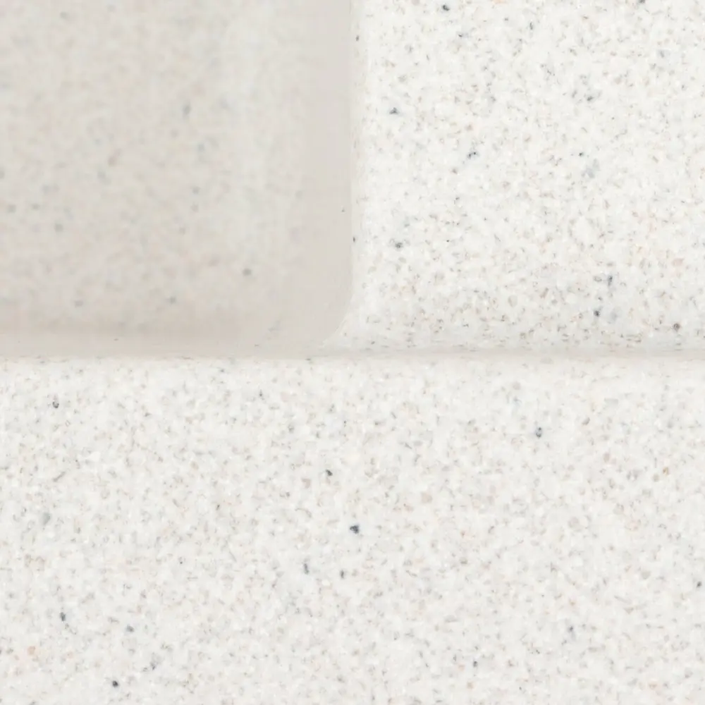 Эта мойка изготовлена с помощью технологии Solid Surface, гарантирующей ее качество и долговечность. Этот материал производится методом литья, и в нем сочетаются 80% кварцевого песка и 20% смолы. Зрительно он напоминает природный камень, а его поверхность является теплой и шелковистой на ощупь.