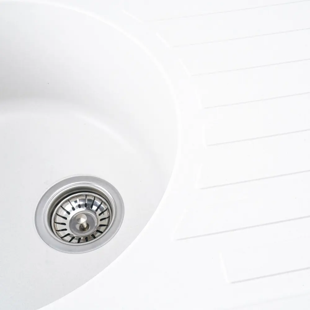 Мойка имеет матовую фактуру и приятный для глаза цвет - белоснежный, что позволяет ей легко вписаться в интерьер кухни.