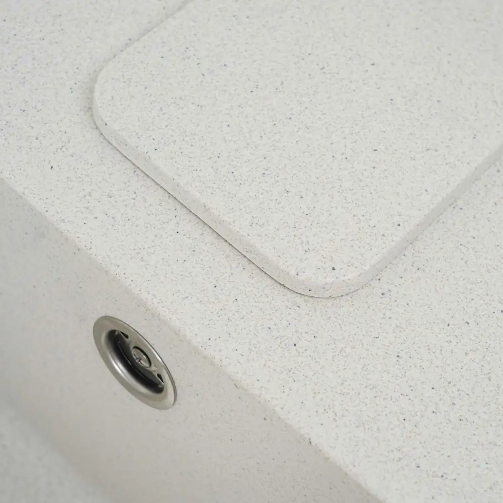 Мойка на 80% состоит из кварца и на 20% из чрезвычайно твердой акриловой смолы, благодаря чему неприхотлива в уходе, а также имеет большой запас прочности.