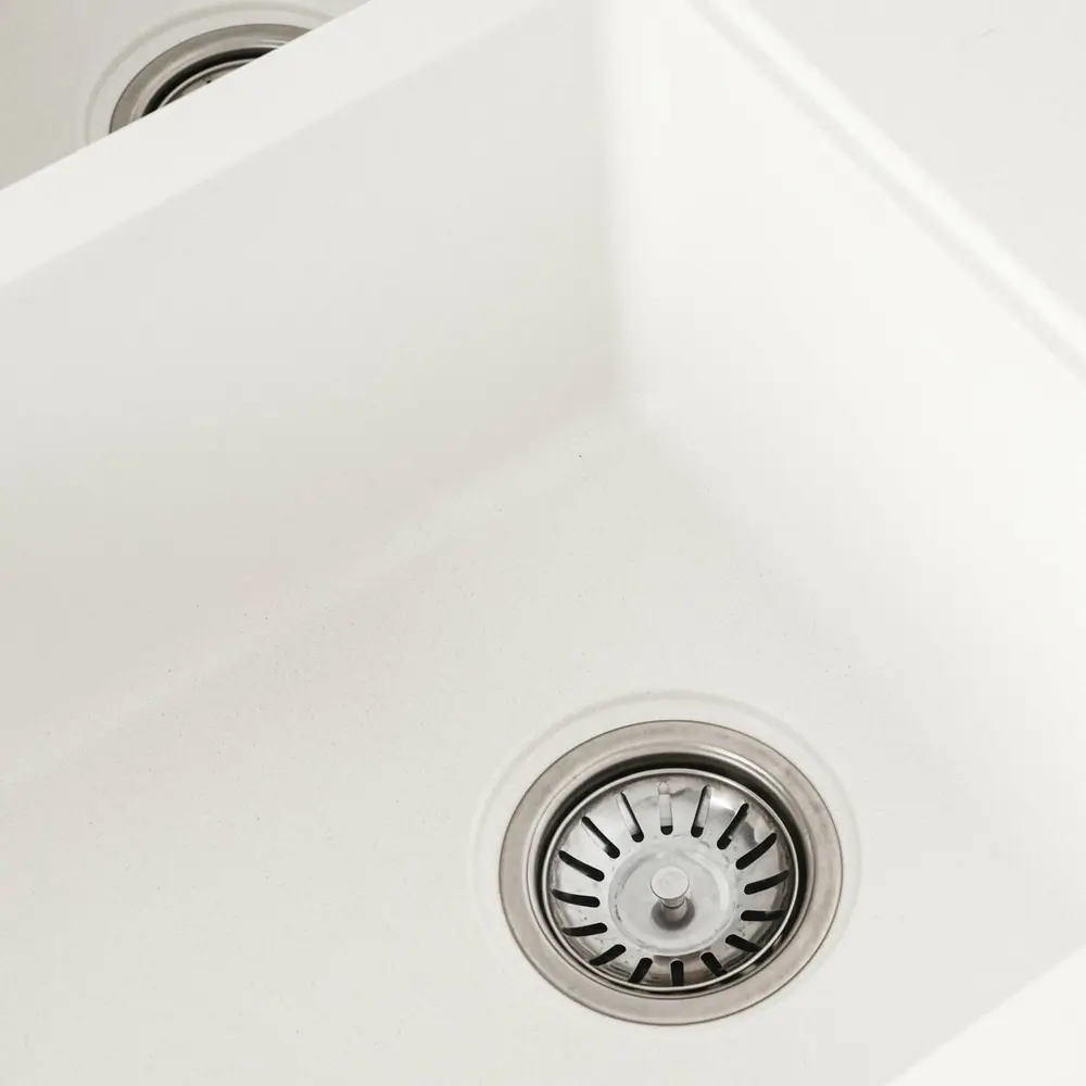Мойка имеет матовую фактуру и приятный для глаза цвет - белоснежный, что позволяет ей легко вписаться в интерьер кухни.