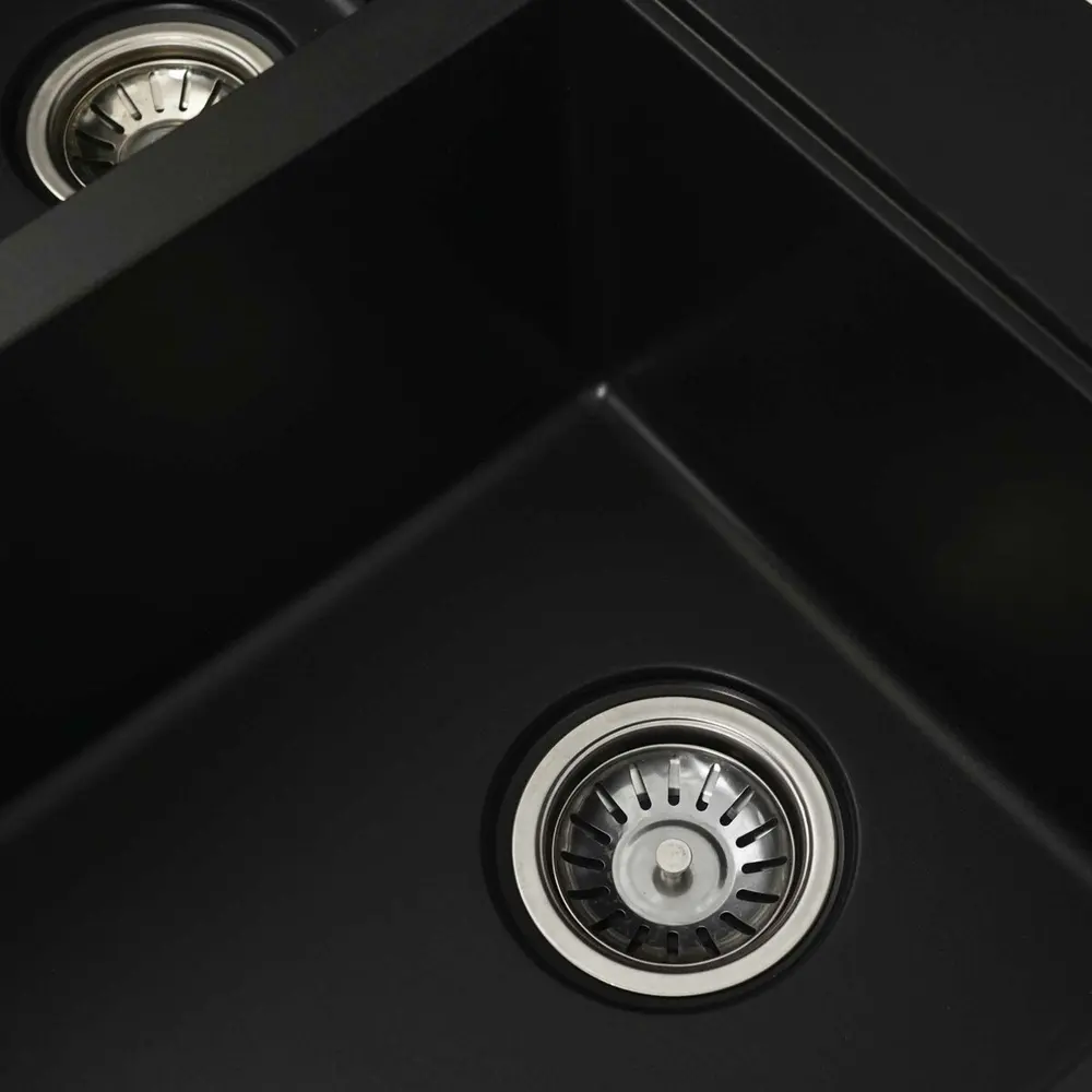 Мойка имеет матовую фактуру и приятный для глаза цвет - черный, что позволяет ей легко вписаться в интерьер кухни.