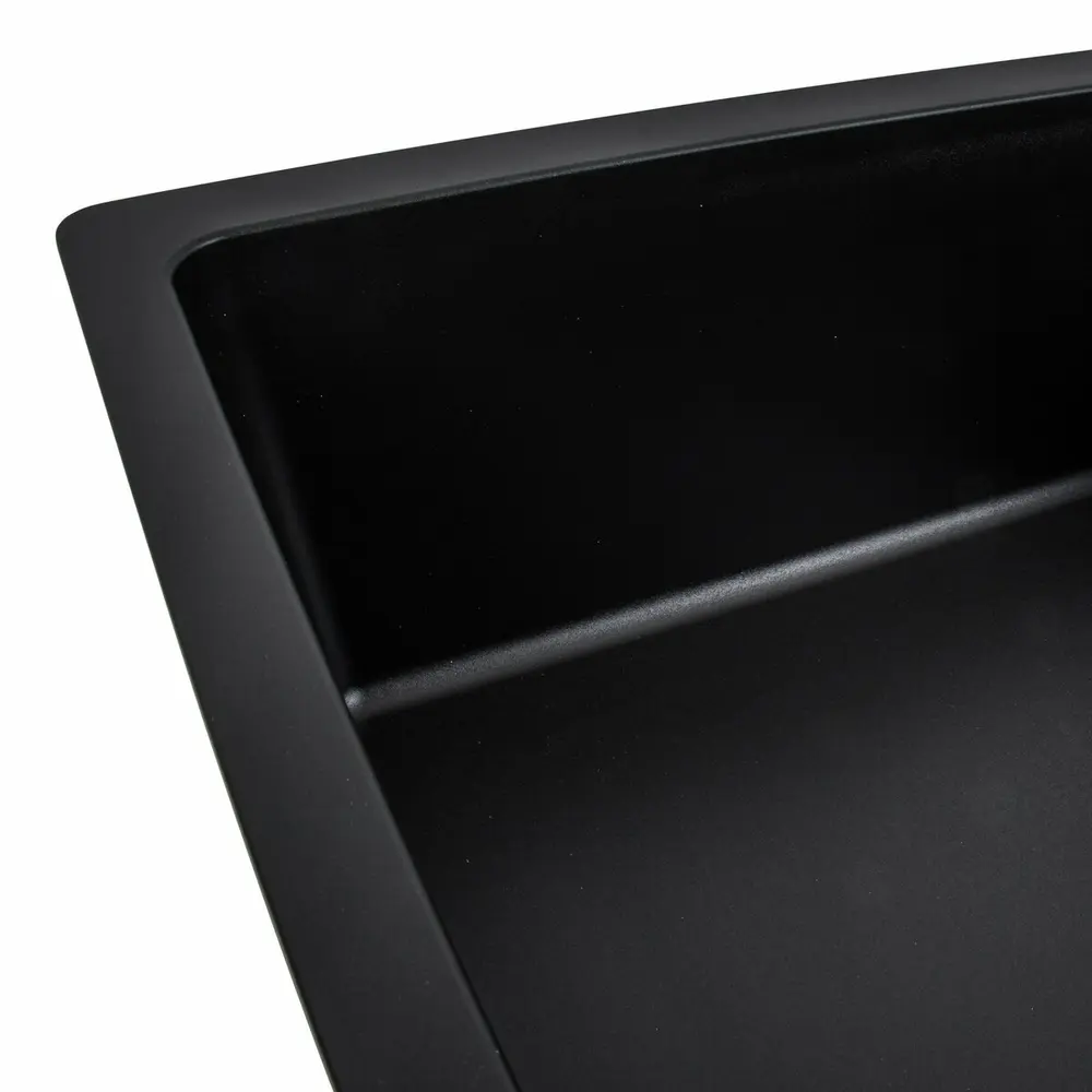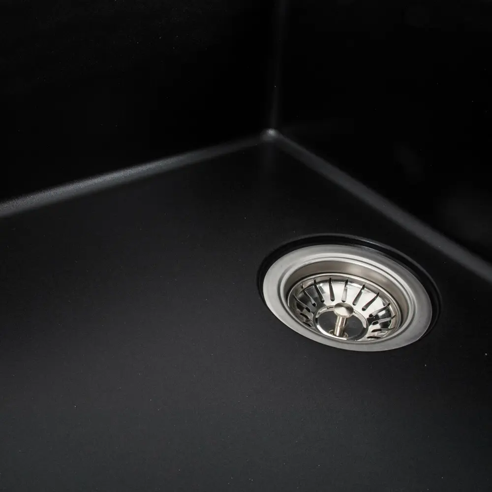 Мойка имеет матовую фактуру и приятный для глаза цвет – черная, что позволяет ей легко вписаться в интерьер кухни.