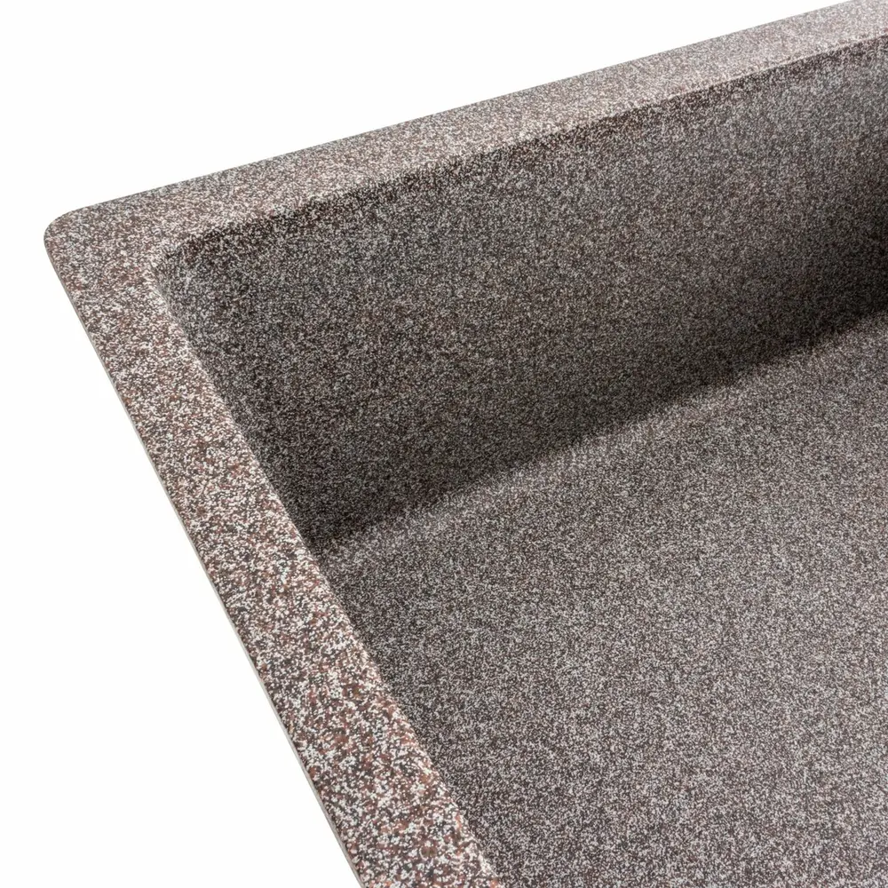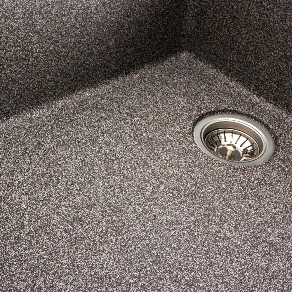 Мойка на 80% состоит из кварца и на 20% из очень жесткой акриловой смолы, благодаря чему неприхотлива в уходе, а также имеет большой запас прочности.