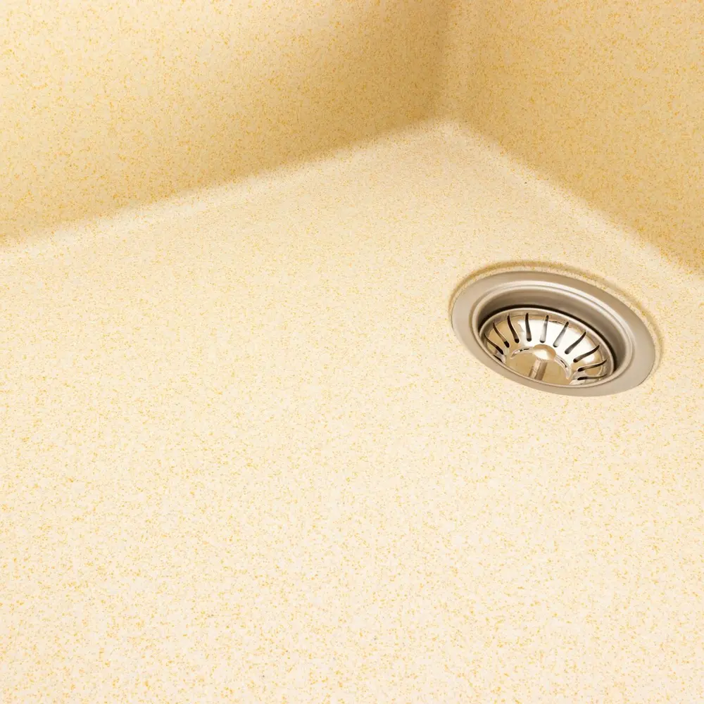 Мойка имеет матовую фактуру и приятный для глаза цвет – песок, позволяющий ей легко вписаться в интерьер кухни.