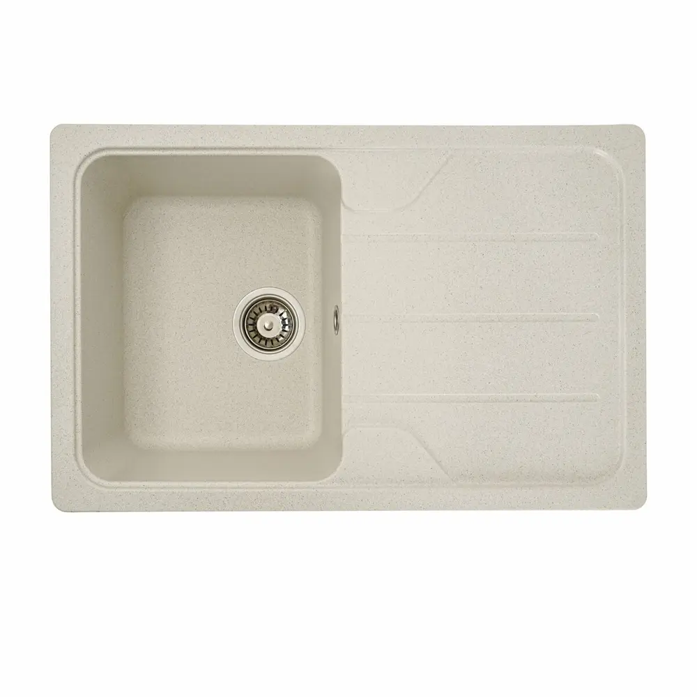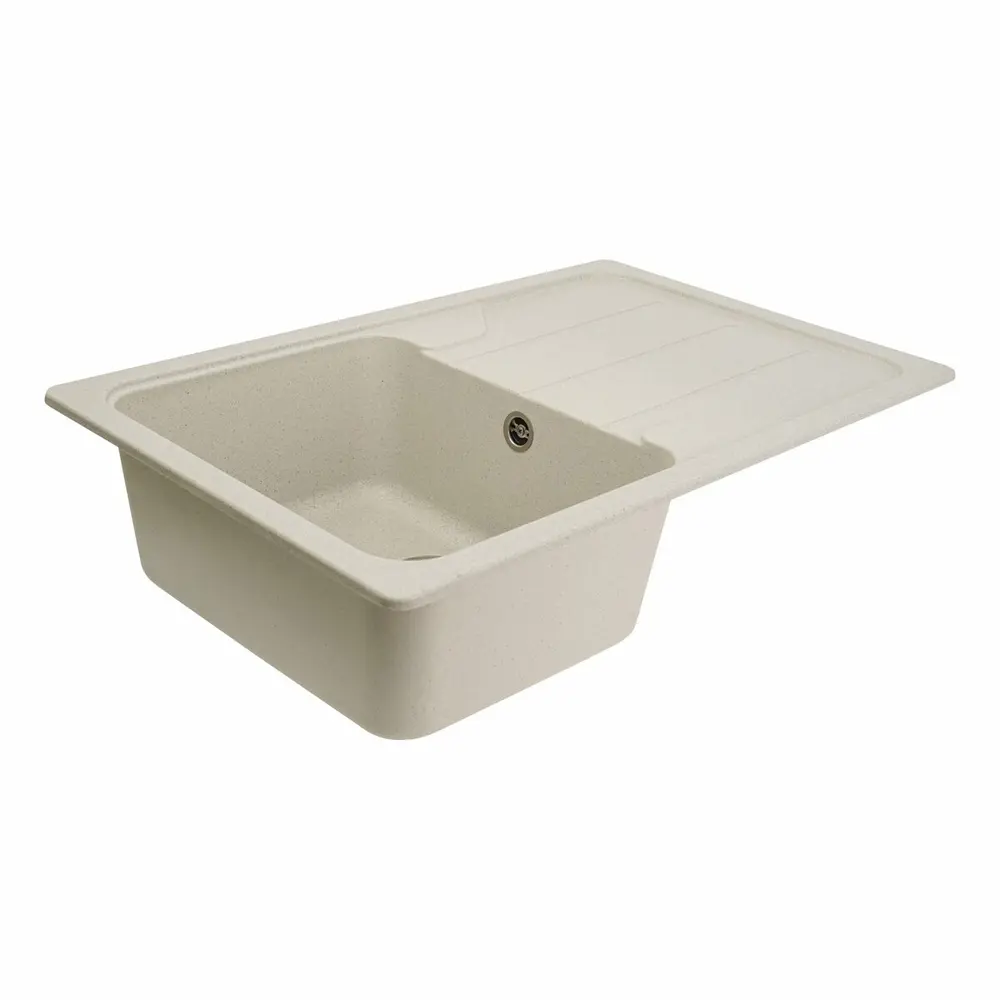 Мойка на 80% состоит из кварца и на 20% из чрезвычайно твердой акриловой смолы, благодаря чему неприхотлива в уходе, а также имеет большой запас прочности.