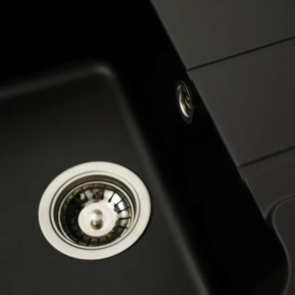 Мойка имеет матовую фактуру и приятный для глаза цвет - черный, что позволяет ей легко вписаться в интерьер кухни.