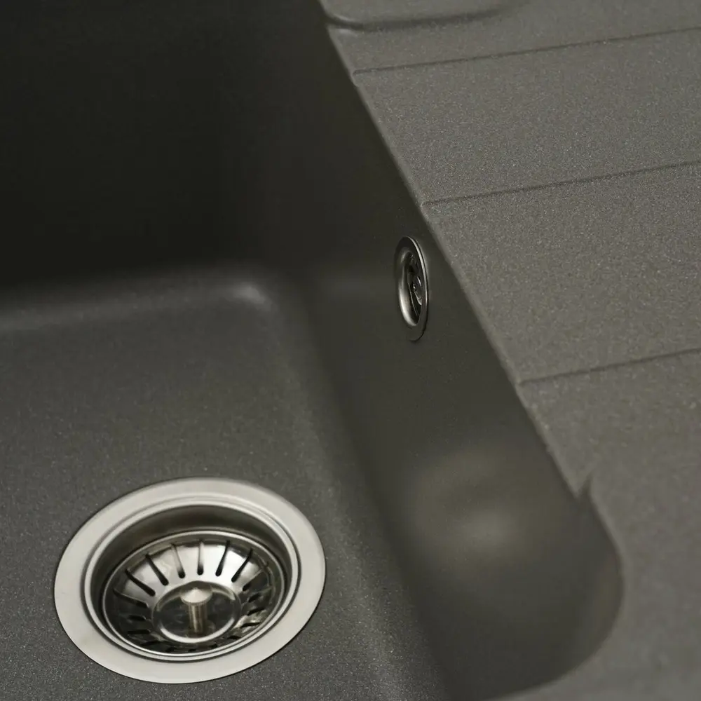 Мойка имеет матовую фактуру и приятный для глаза цвет - серый муссон, что позволяет ей легко вписаться в интерьер кухни.