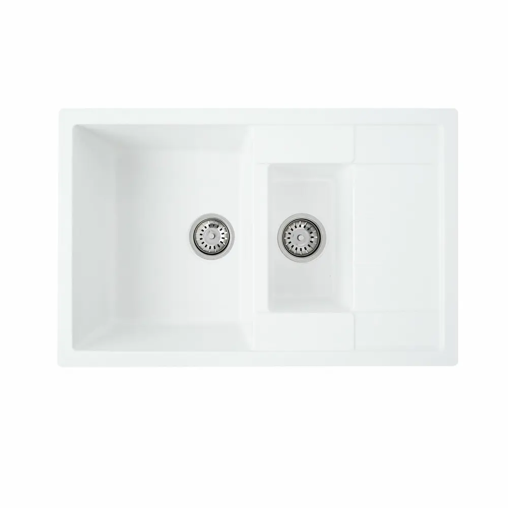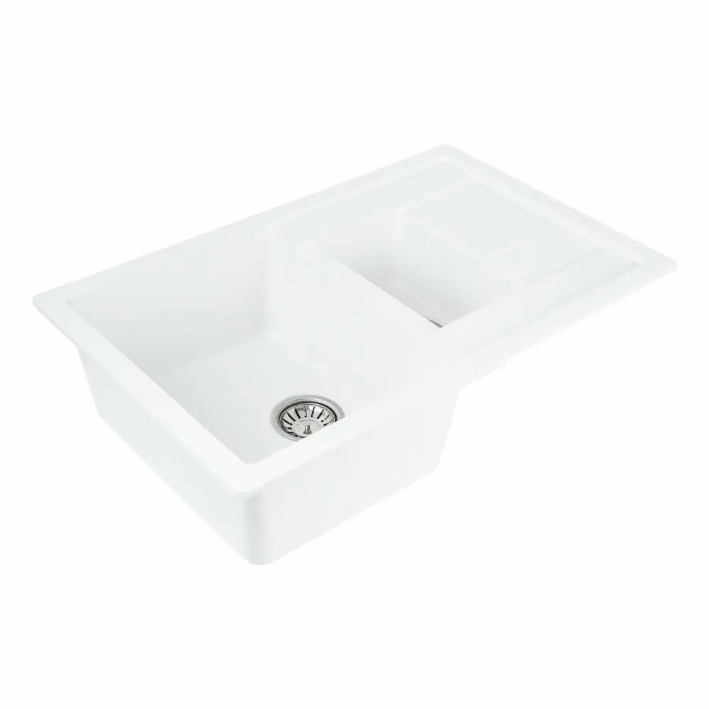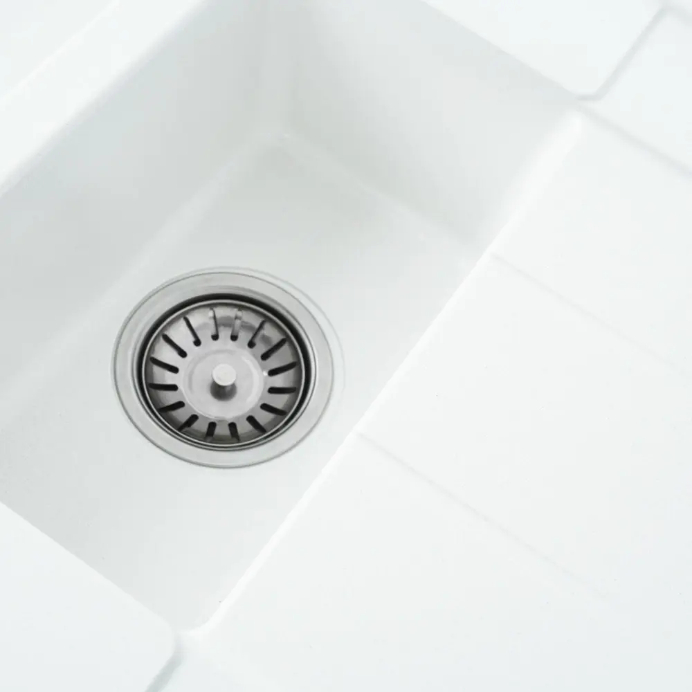 Мойка на 80% состоит из кварца и на 20% из чрезвычайно твердой акриловой смолы, благодаря чему неприхотлива в уходе, а также имеет большой запас прочности.