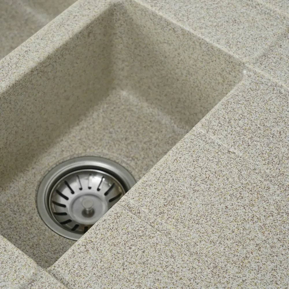 Мойка на 80% состоит из кварца и на 20% из чрезвычайно твердой акриловой смолы, благодаря чему неприхотлива в уходе, а также имеет большой запас прочности.