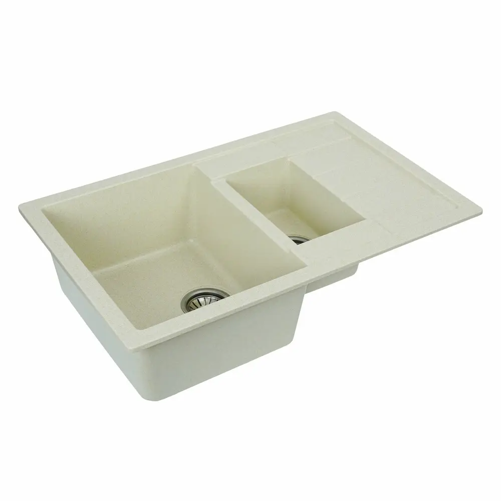 Мойка на 80% состоит из кварца и на 20% из чрезвычайно твердой акриловой смолы, благодаря чему неприхотлива в уходе, а также имеет большой запас прочности.