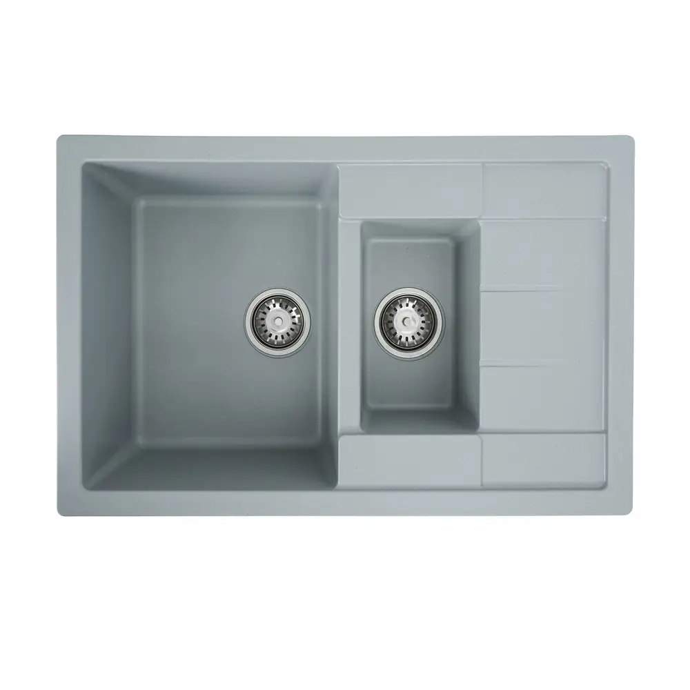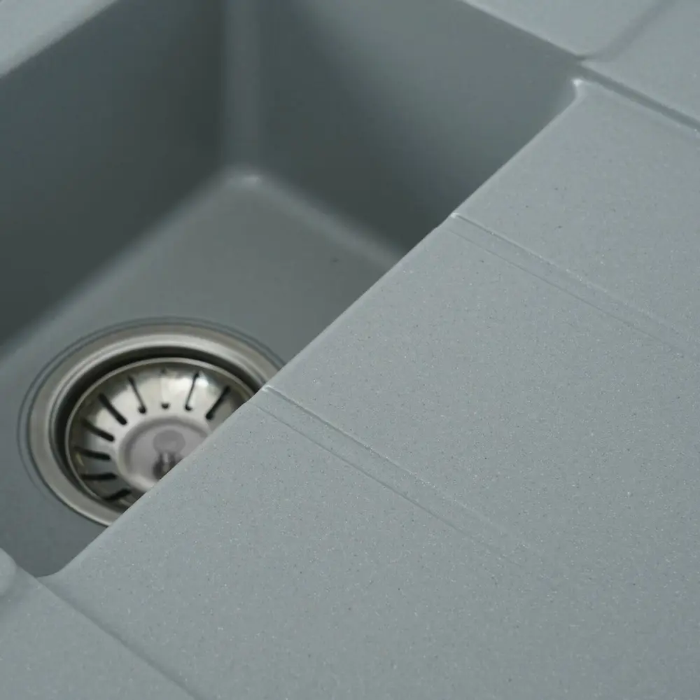 Мойка имеет матовую фактуру и приятный для глаза цвет - серый металлик, что позволяет ей легко вписаться в интерьер кухни.