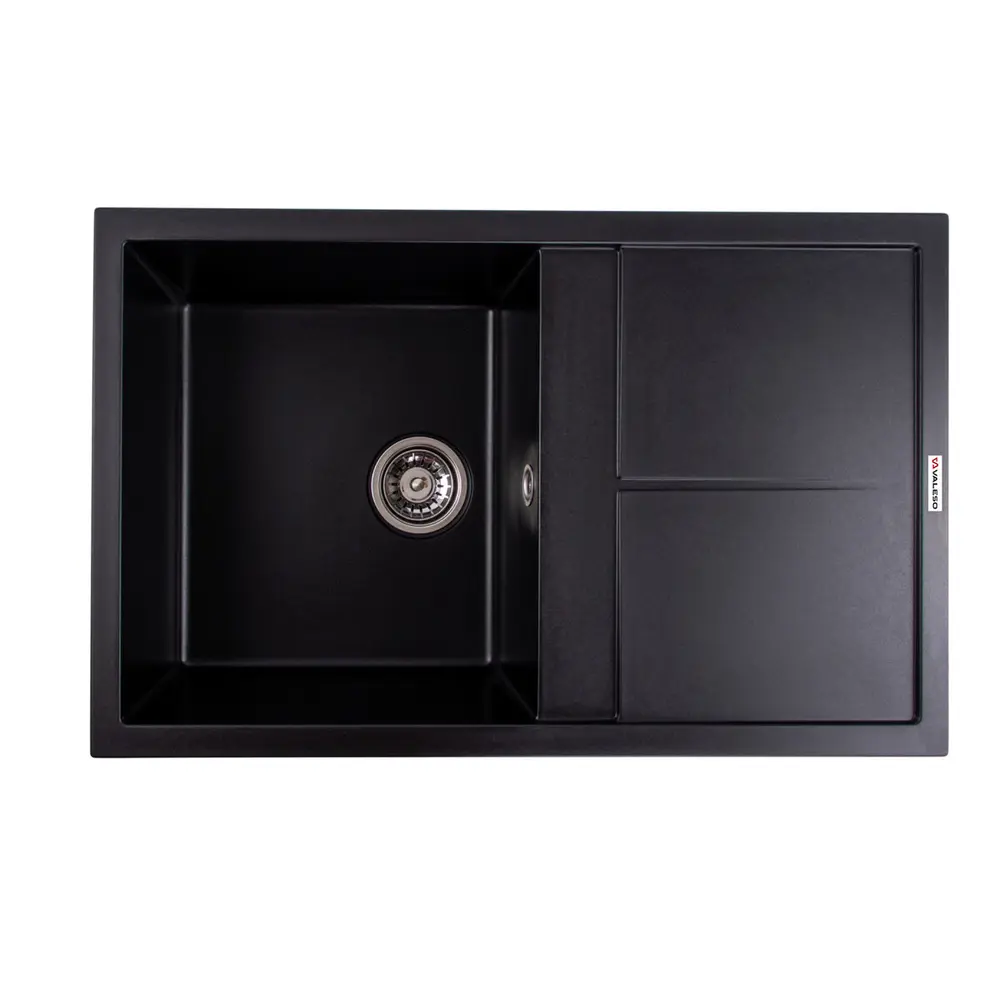 Гранитная мойка для кухни 7950 SELENA украинского бренда VALESO – это стильная, врезная, прямоугольная мойка, которая своим видом прекрасно дополнит дизайн вашей кухни. Мойка на 80% состоит из кварца и на 20% из очень жесткой акриловой смолы, благодаря чему неприхотлива в уходе, а также имеет большой запас прочности. Размеры чаши, 377x430x200 мм, делают ее очень вместительной и удобной в использовании. Монтаж производится врезным способом в кухонный шкаф шириной не менее 500 мм. Мойка имеет матовую фактуру и приятный для глаза цвет позволяющий ей легко вписаться в интерьер кухни. Мойка изготовлена в Украине из качественного немецкого сырья по технологии Solid Surface с соблюдением всех необходимых стандартов.