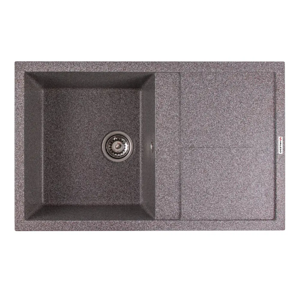 Гранитная мойка для кухни 7950 SELENA украинского бренда VALESO – это стильная, врезная, прямоугольная мойка, которая своим видом прекрасно дополнит дизайн вашей кухни. Мойка на 80% состоит из кварца и на 20% из очень жесткой акриловой смолы, благодаря чему неприхотлива в уходе, а также имеет большой запас прочности. Размеры чаши, 377x430x200 мм, делают ее очень вместительной и удобной в использовании. Монтаж производится врезным способом в кухонный шкаф шириной не менее 500 мм. Мойка имеет матовую фактуру и приятный для глаза цвет позволяющий ей легко вписаться в интерьер кухни. Мойка изготовлена в Украине из качественного немецкого сырья по технологии Solid Surface с соблюдением всех необходимых стандартов.
