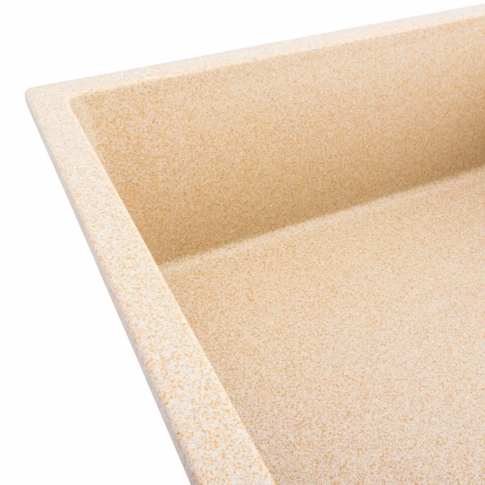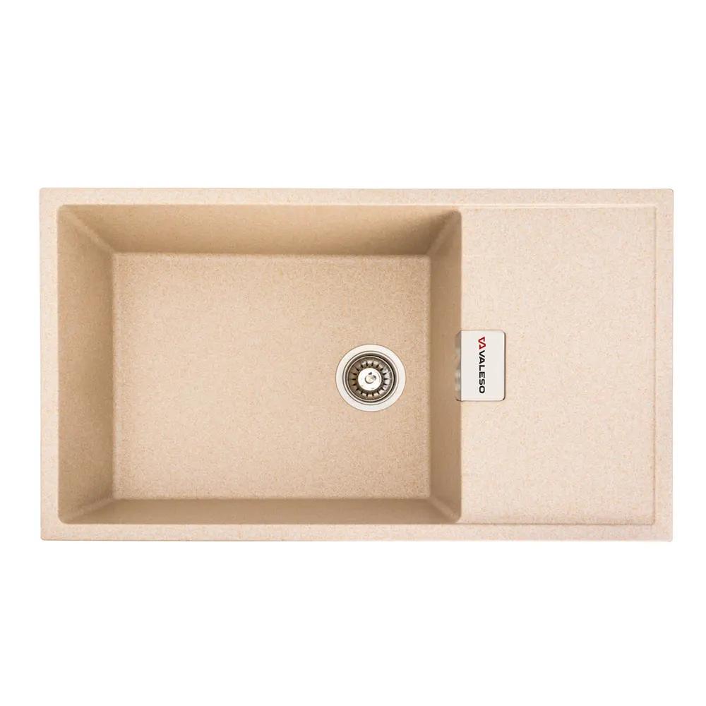 Гранитная мойка для кухни 8650 DIAMOND украинского бренда VALESO – это стильная, врезная, прямоугольная мойка, которая своим видом прекрасно дополнит дизайн вашей кухни. Мойка на 80% состоит из кварца и на 20% из очень жесткой акриловой смолы, благодаря чему неприхотлива в уходе, а также имеет большой запас прочности. Размеры чаши, 545х450х185 мм, делают ее очень вместительной и удобной в использовании. Мойка имеет матовую фактуру и приятный для глаза цвет позволяющий ей легко вписаться в интерьер кухни. Мойка изготовлена в Украине из качественного немецкого сырья по технологии Solid Surface с соблюдением всех необходимых стандартов.
