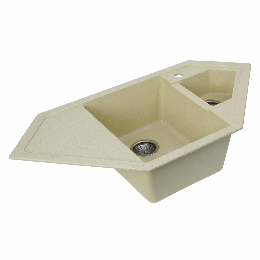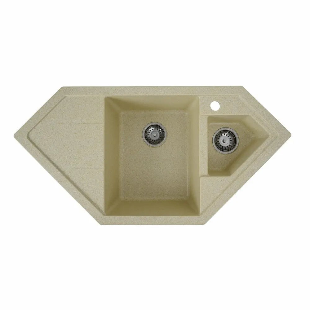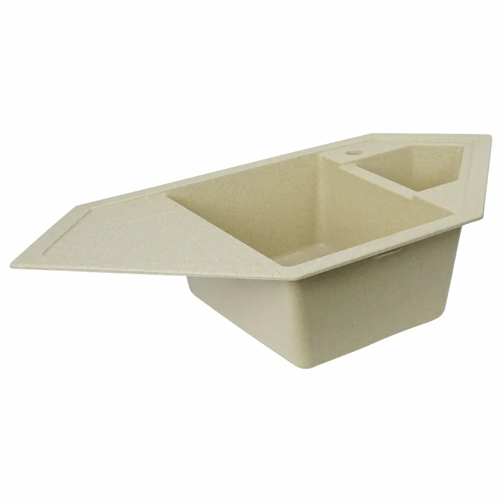 Мойка имеет матовую фактуру и приятный для глаза цвет - песок, что позволяет ей легко вписаться в интерьер кухни.