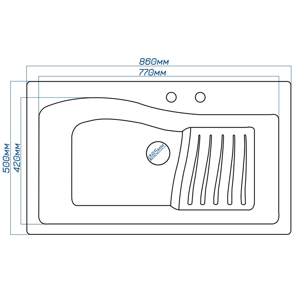 - Антибактеріальні властивості (поверхня мийки не вбирає рідину, що унеможливлює розвиток шкідливих мікроорганізмів).