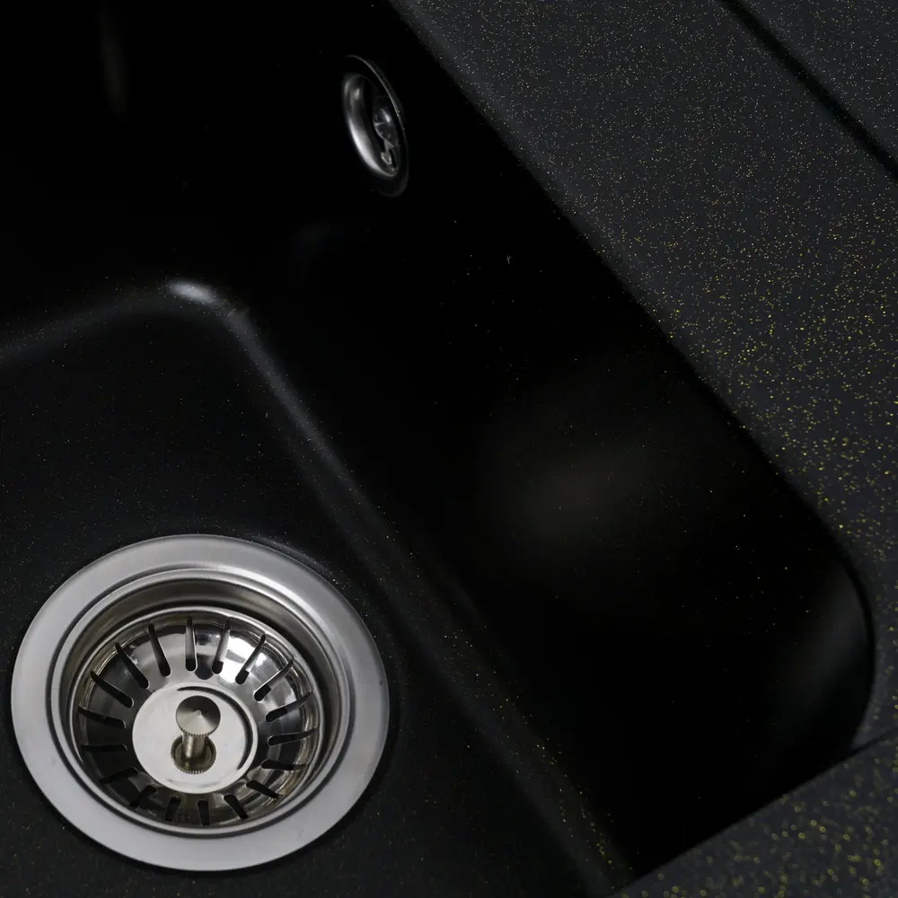 Мийка має матову фактуру і приємний для ока колір - чорний (з золотими крапками), що дозволяє їй легко вписатися в інтер'єр кухні.