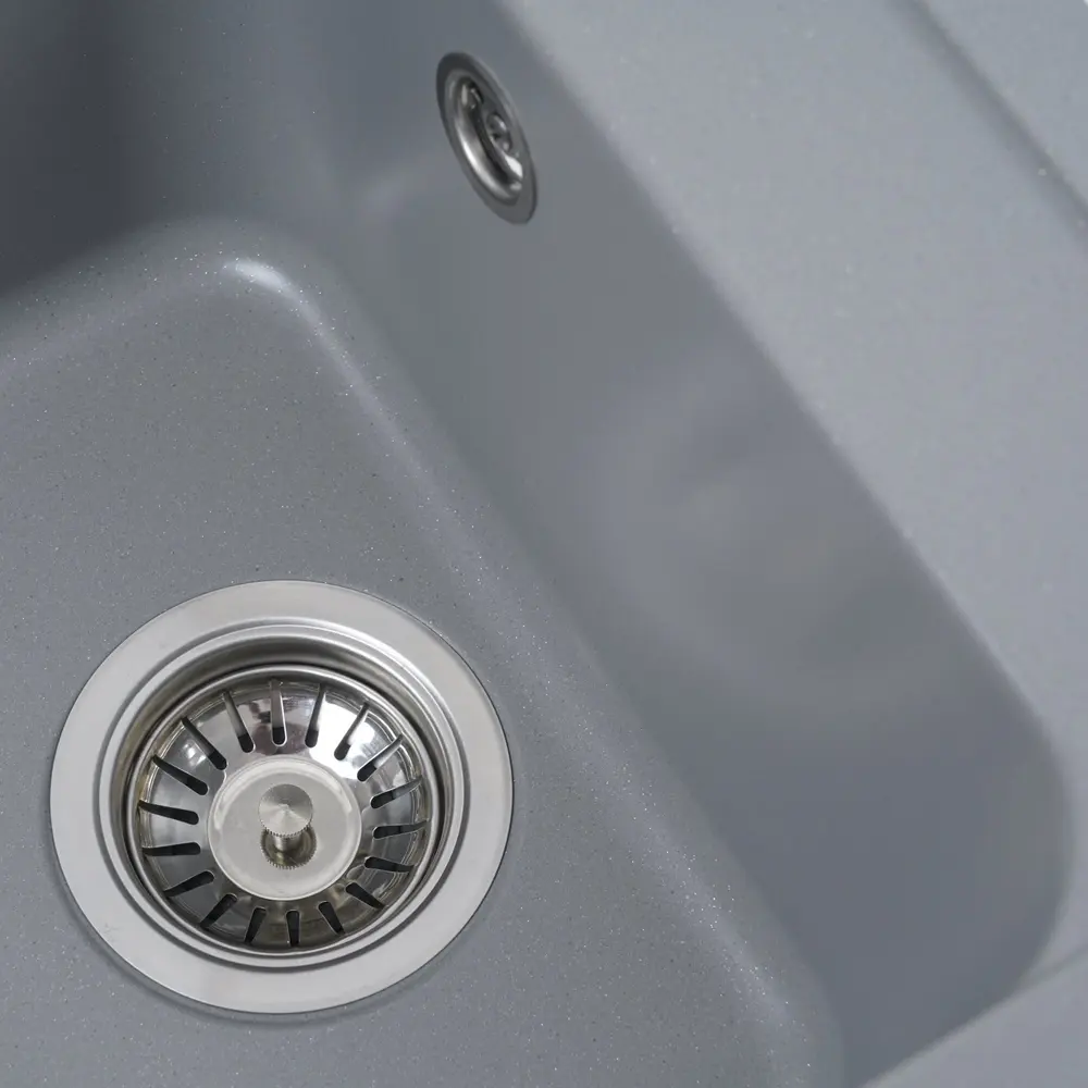Мийка має матову фактуру і приємний для ока колір - сірий металік, що дозволяє їй легко вписатися в інтер'єр кухні.