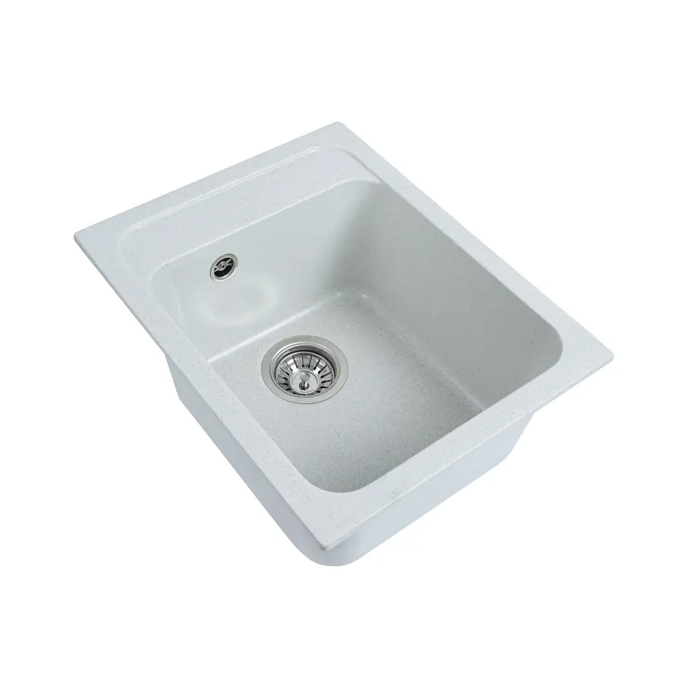 Мийка має матову фактуру і приємний для ока колір - білий (в чорну крапку), що дозволяє їй легко вписатися в інтер'єр кухні.