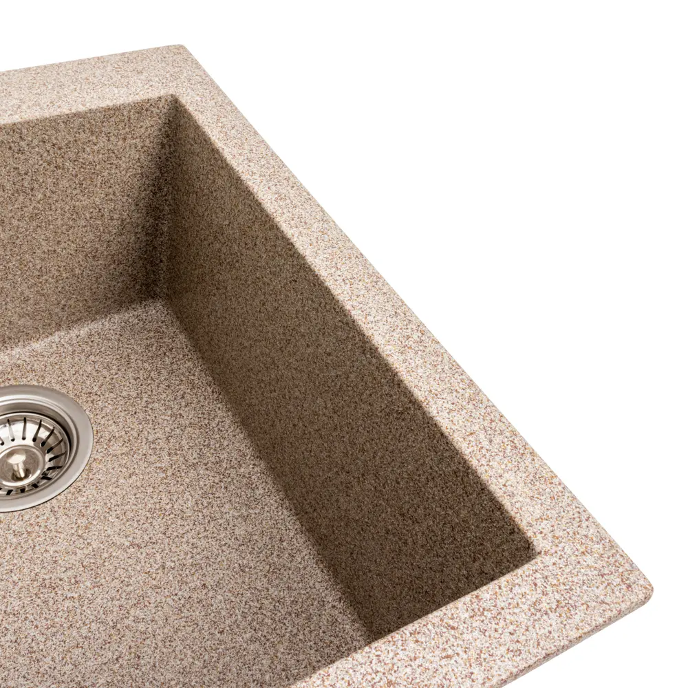Гранітна мийка для кухні 4150 SOKIL українського бренду Platinum - це стильна, врізна, прямокутна мийка, яка своїм виглядом чудово доповнить дизайн вашої кухні. Мийка на 80% складається з кварцу та на 20% з надзвичайно твердої акрилової смоли, завдяки чому невибаглива у догляді, а також має великий запас міцності. Мийка має матову фактуру і приємний для ока колір, що дозволяє їй легко вписатися в інтер'єр кухні. Мийка виготовлена в Україні із якісної німецької сировини за технологією Solid Surface з дотриманням усіх необхідних стандартів.