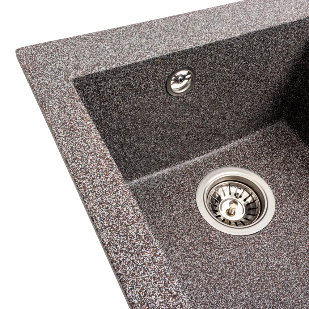 Гранитная мойка для кухни 4150 SOKIL украинского бренда Platinum – это стильная, врезная, прямоугольная мойка, которая своим видом прекрасно дополнит дизайн вашей кухни. Мойка на 80% состоит из кварца и на 20% из очень жесткой акриловой смолы, благодаря чему неприхотлива в уходе, а также имеет большой запас прочности. Мойка имеет матовую фактуру и приятный глазу цвет, что позволяет ей легко вписаться в интерьер кухни. Мойка изготовлена в Украине из качественного немецкого сырья по технологии Solid Surface с соблюдением всех необходимых стандартов.