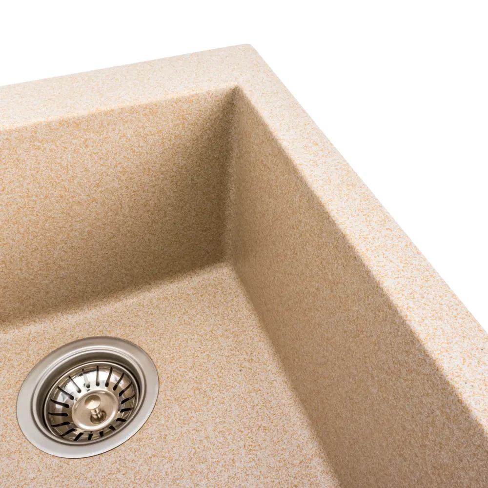 Гранитная мойка для кухни 4150 SOKIL украинского бренда Platinum – это стильная, врезная, прямоугольная мойка, которая своим видом прекрасно дополнит дизайн вашей кухни. Мойка на 80% состоит из кварца и на 20% из очень жесткой акриловой смолы, благодаря чему неприхотлива в уходе, а также имеет большой запас прочности. Мойка имеет матовую фактуру и приятный глазу цвет, что позволяет ей легко вписаться в интерьер кухни. Мойка изготовлена в Украине из качественного немецкого сырья по технологии Solid Surface с соблюдением всех необходимых стандартов.
