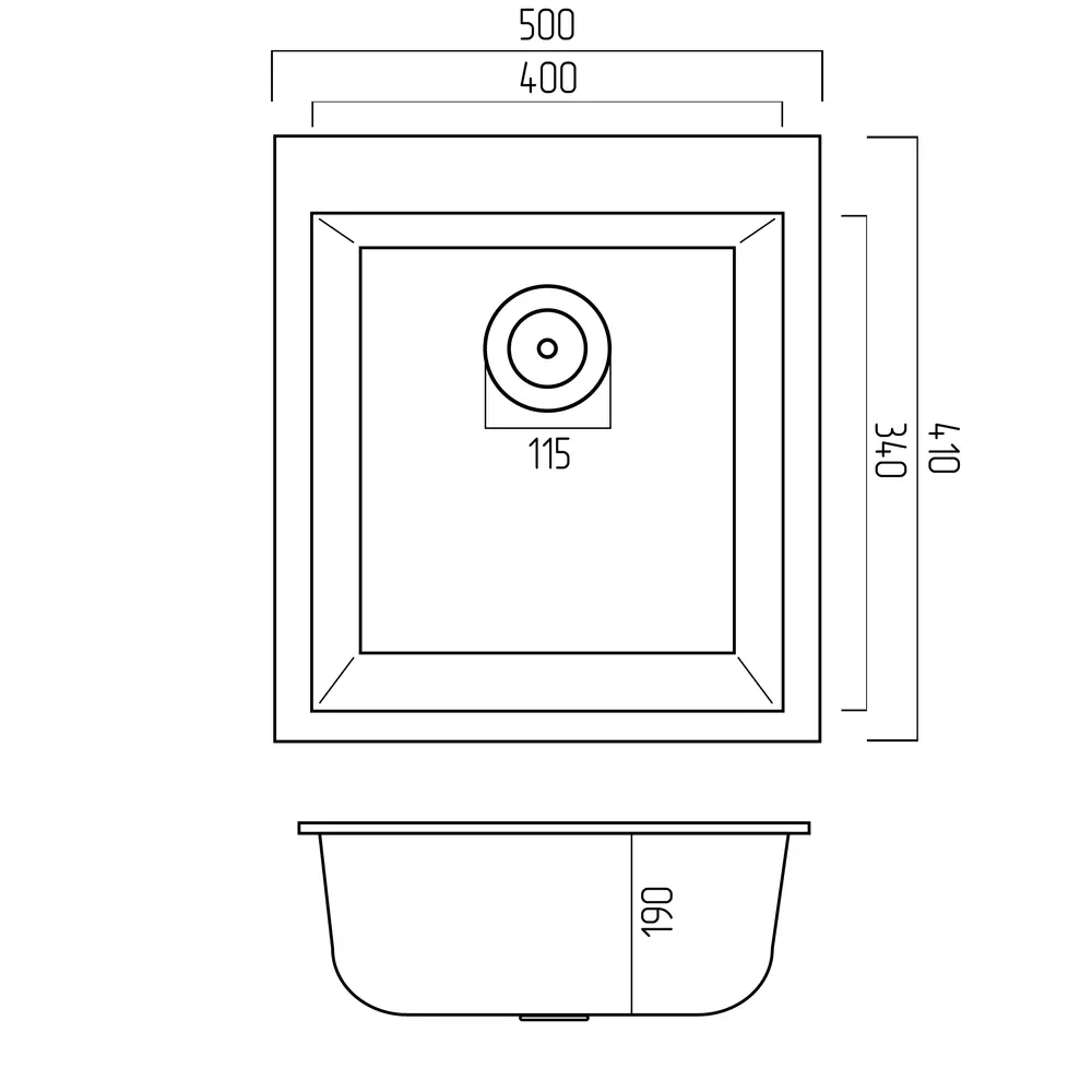 Ширина чаши мойки 340