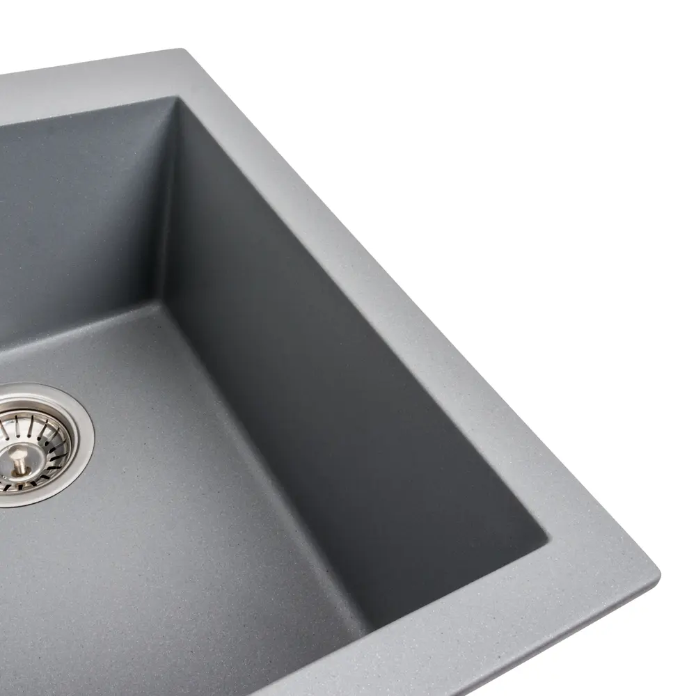 Гранітна мийка для кухні 4150 SOKIL українського бренду Platinum - це стильна, врізна, прямокутна мийка, яка своїм виглядом чудово доповнить дизайн вашої кухні. Мийка на 80% складається з кварцу та на 20% з надзвичайно твердої акрилової смоли, завдяки чому невибаглива у догляді, а також має великий запас міцності. Мийка має матову фактуру і приємний для ока колір, що дозволяє їй легко вписатися в інтер'єр кухні. Мийка виготовлена в Україні із якісної німецької сировини за технологією Solid Surface з дотриманням усіх необхідних стандартів.